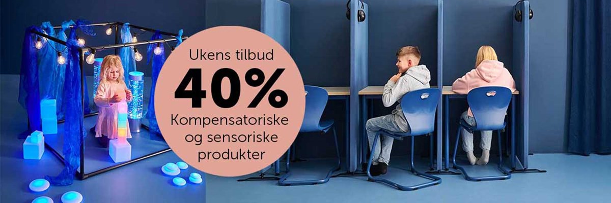 Nå kan du gjøre læringsmiljøet i skole og barnehage enda mer inkluderende – til en ekstra gunstig pris. Vi tilbyr 40% rabatt på et stort utvalg av kompensatoriske verktøy og sensoriske produkter som støtter mestring, konsentrasjon og ro i hverdagen.