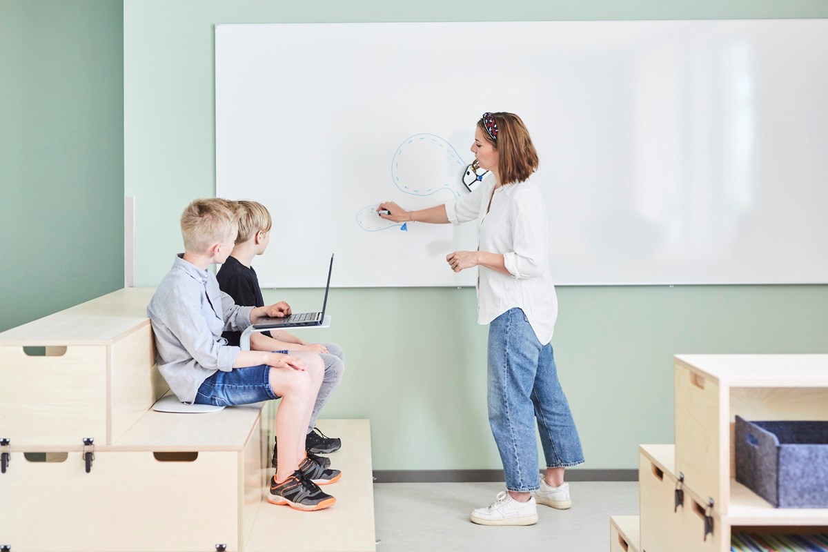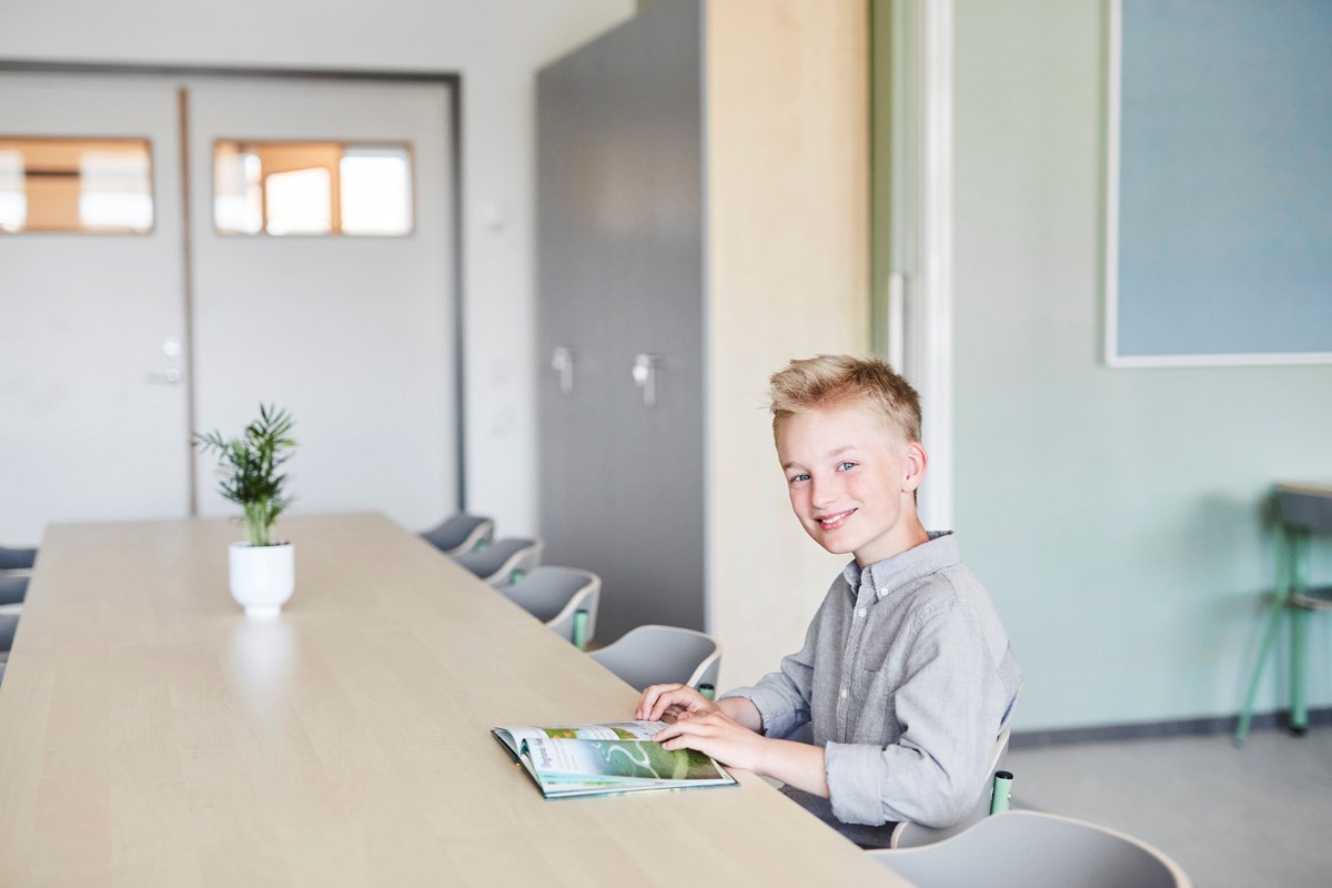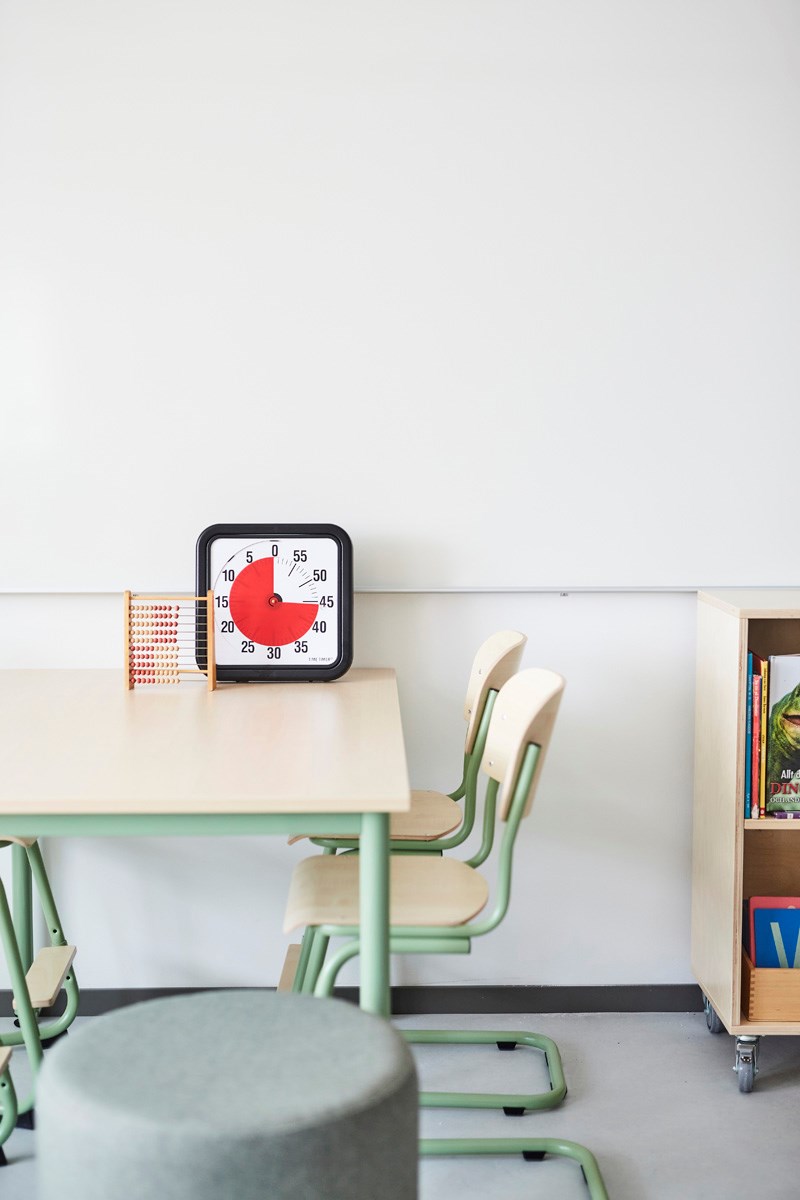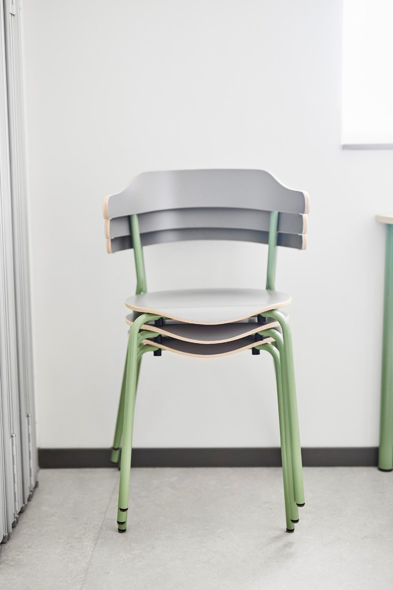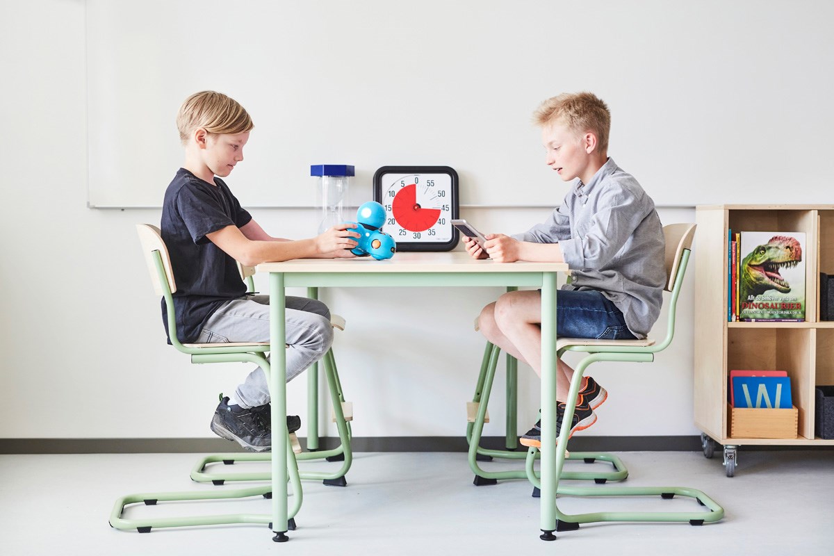 Klasserommene er møblert med et individuelt sete for hver elev, og møblene som er valgt er Matte-elevstolen og Mandal-skolepulten med innebygd oppbevaring.