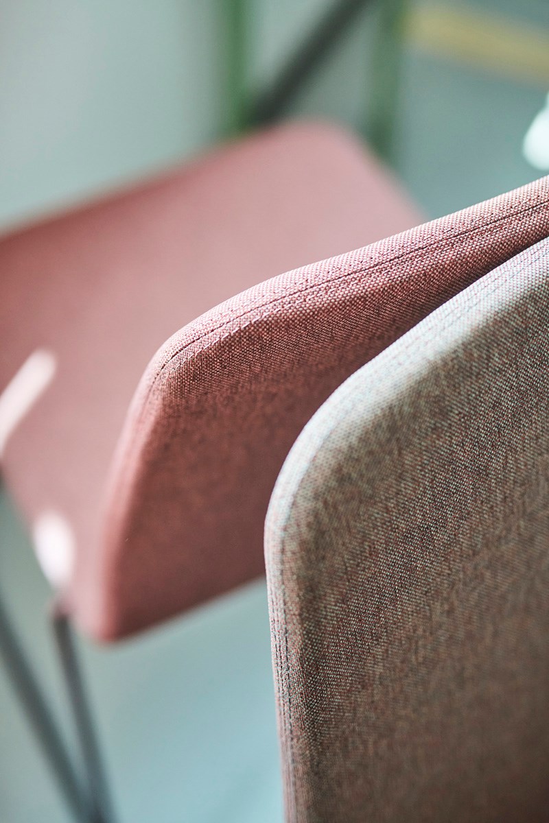 Fargevalget har spilt en sentral rolle gjennom hele prosjektet, og med fargevalgene ønsket vi å skape miljøer som gir sinnsro, ro og kreativitet. Også tekstiler til f.eks. Sofaer, lydabsorbenter eller andre polstrede møbler velges for å gi et rolig inntrykk og harmonere med resten av skolens fargevalg.