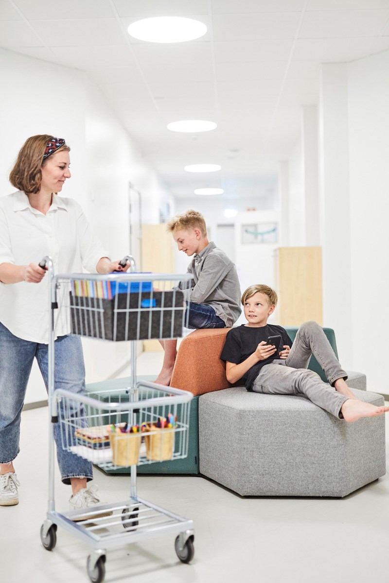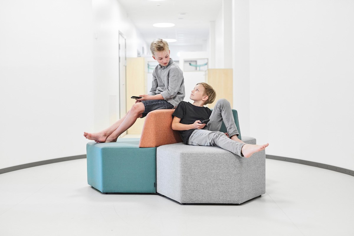 De sekskantformede sittemodulene, kjent som «Heksa», kan bygges sammen i ulike konstellasjoner. Plassert i korridoren, gjør de det enkelt å passere på sidene. Elevene kan sitte i mindre grupper for gruppearbeid, og noen av modulene har rygger som skjermer av gruppen på den andre siden.