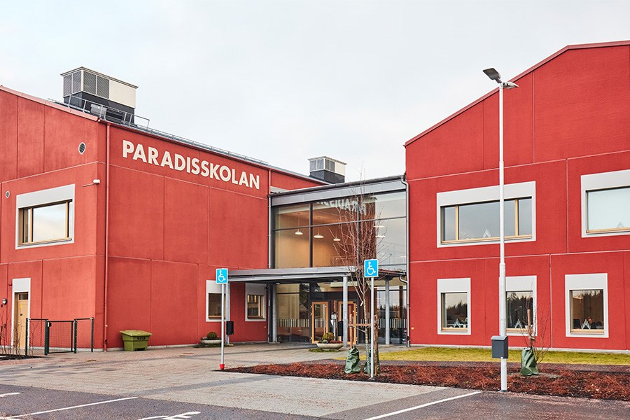 Paradisskolan er en moderne skole med naturskjønne omgivelser som er en av de nyeste i Älmhult kommune. Skolen tar imot elever fra første til og med 6. trinn. Fokus er på samarbeidslæring, som betyr at elevene er hverandres læringsressurser. Den klassiske skolepulten er her valgt for å gi plass til større bord hvor de kan sitte i grupper. Dette gjør at de lett kan hjelpe hverandre, noe som bidrar til et høyt samarbeid og god kommunikasjon.
