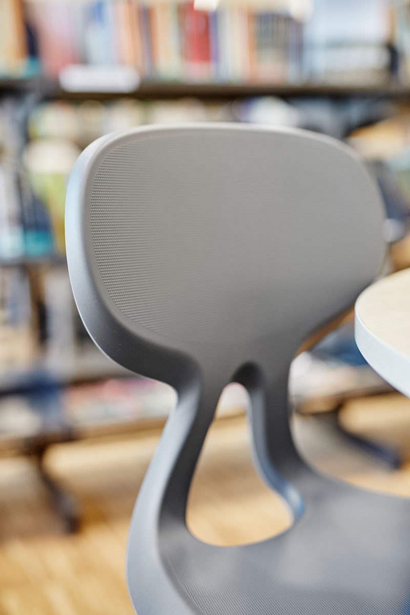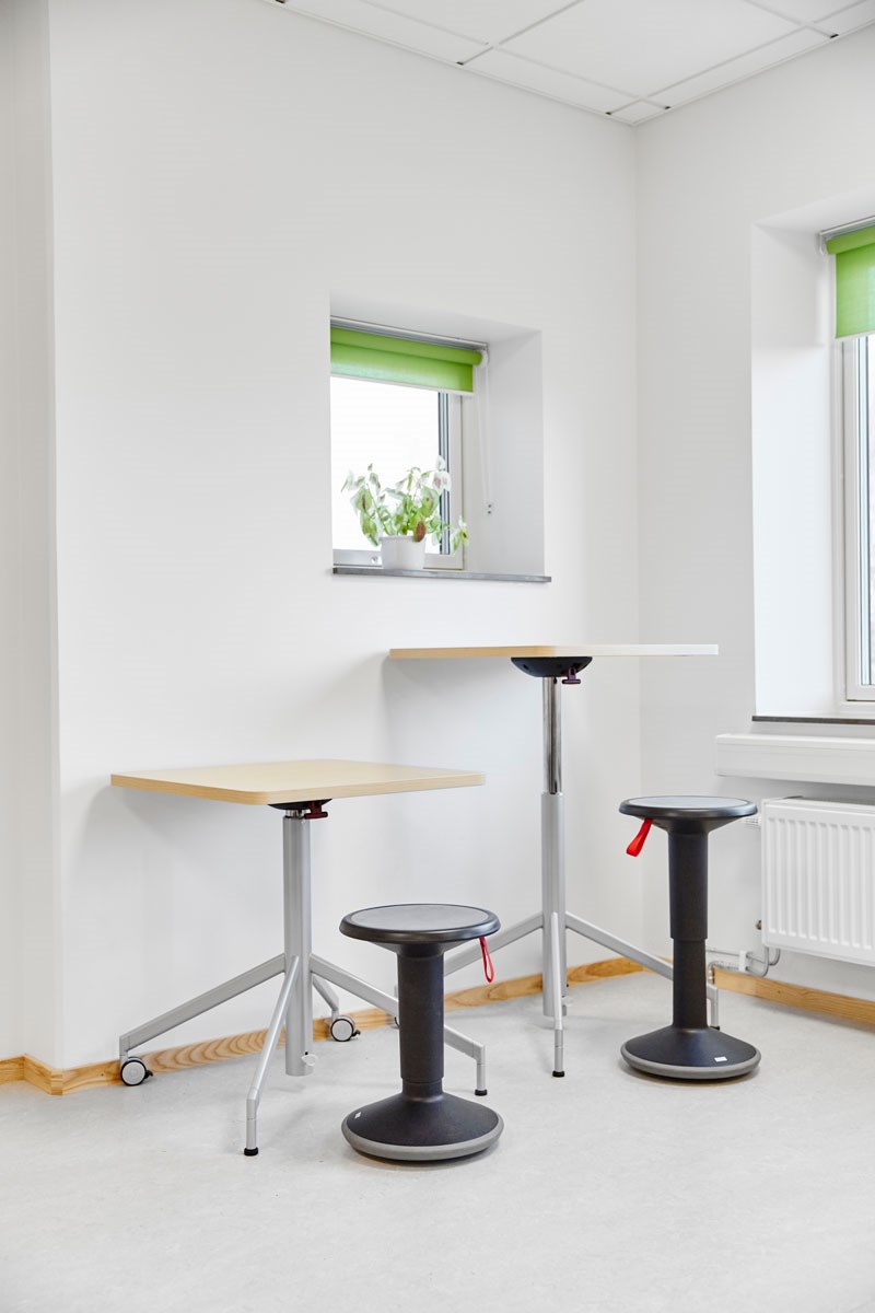Med lydabsorbenten Enkel kan man enkelt dele opp rommet eller skape avskilte og lyddempede områder som raskt kan tilpasses etter behov. Elevstolen Poly tilbyr utmerket ergonomi og er justerbar i høyden med en brukervennlig gasspatron.