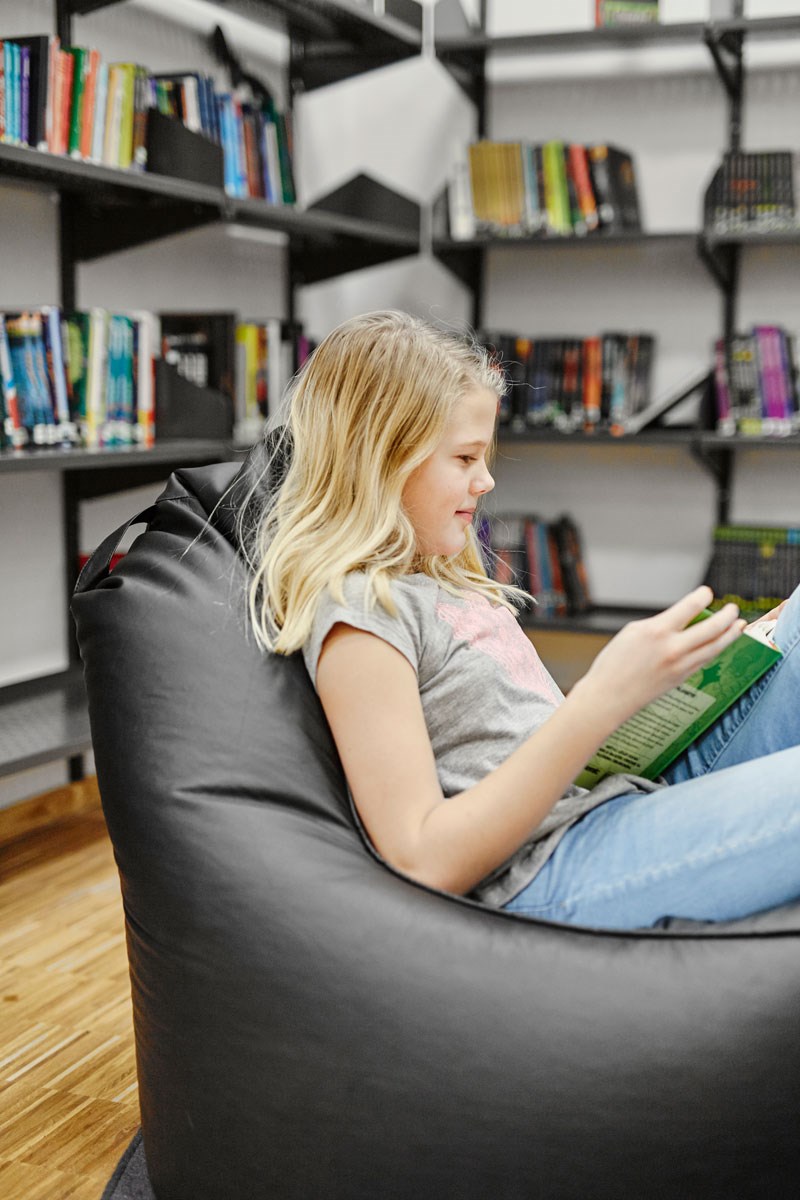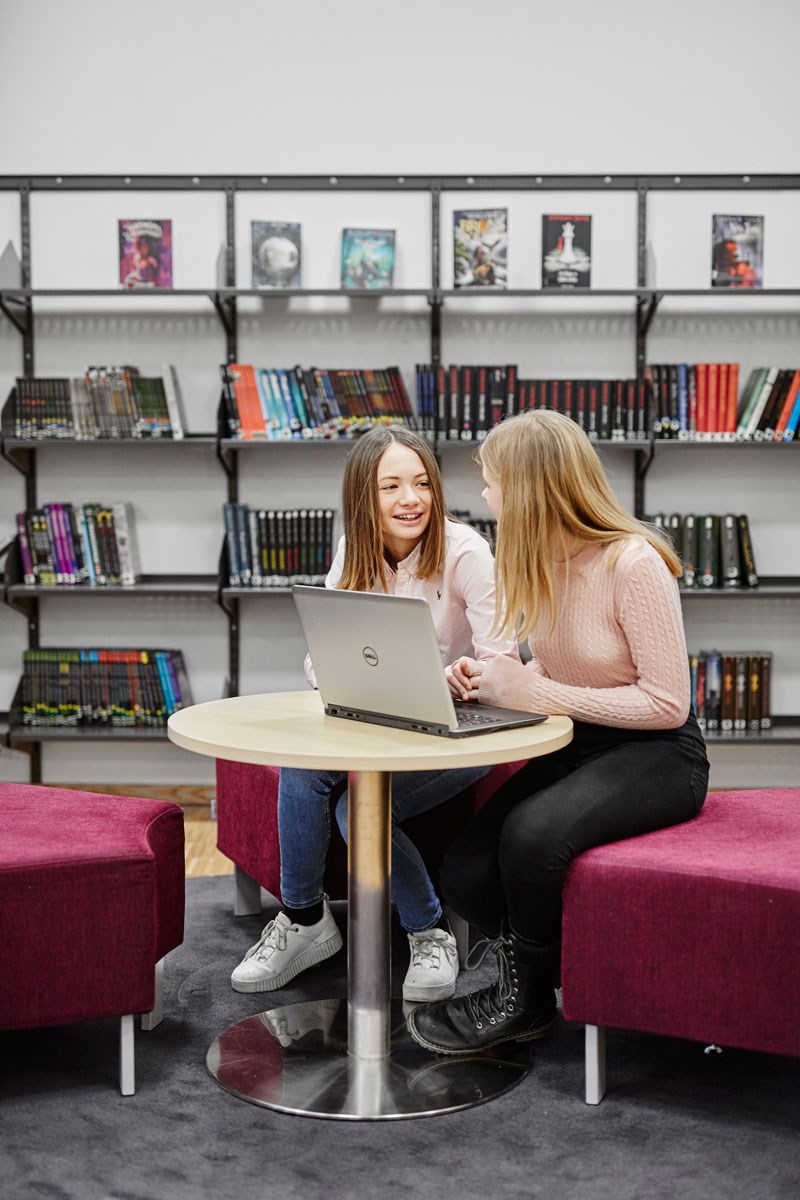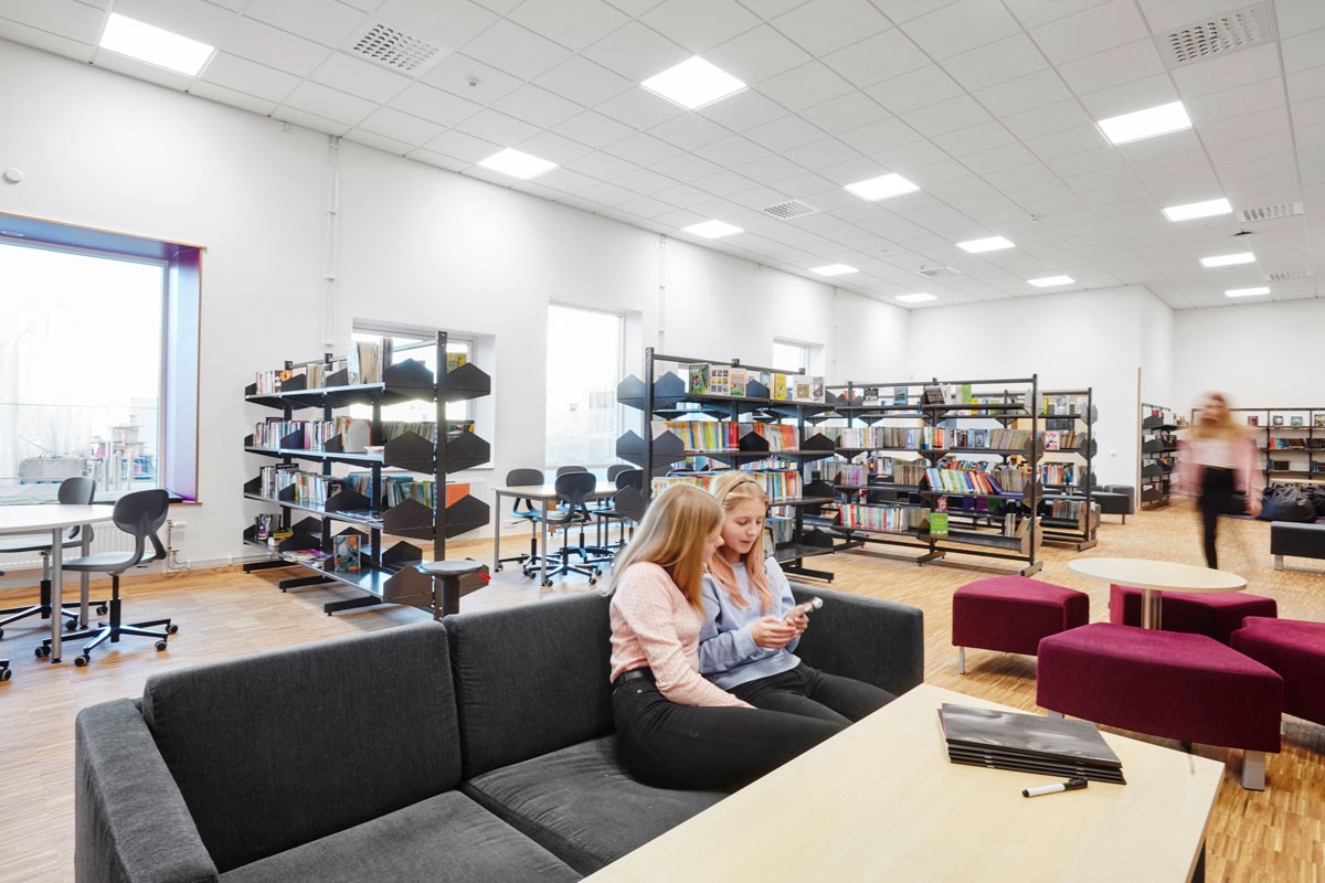 Biblioteket har mange funksjoner og anses ofte som skolen hjerte. Her finnes det læringssituasjoner som spenner fra stille og avskilte områder for individuelt arbeid til miljøer for gruppearbeid og sosialt samvær. I tillegg fungerer biblioteket som et knutepunkt for kunnskapsdeling og inspirasjon, hvor elever kan utforske nye emner, delta i workshops og samarbeide på tvers av fag. Det er et sted hvor kreativitet og læring går hånd i hånd, og hvor alle føler seg velkomne og motiverte til å utvikle seg.