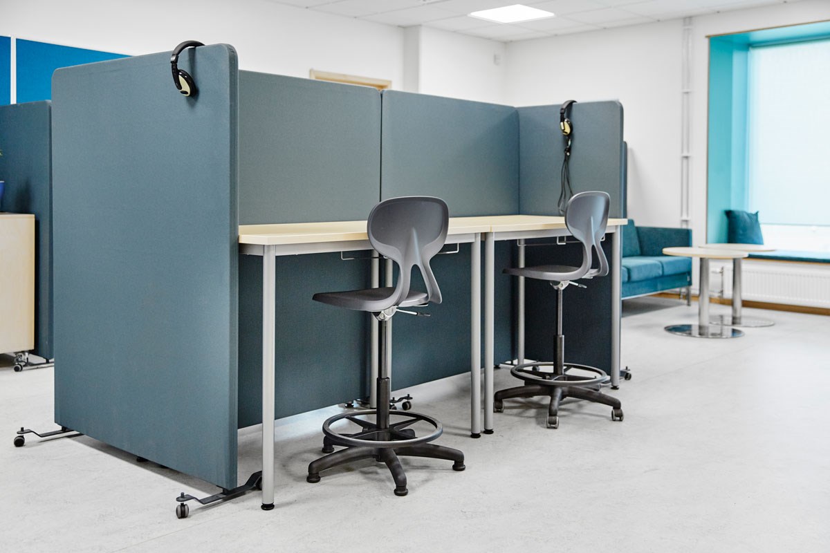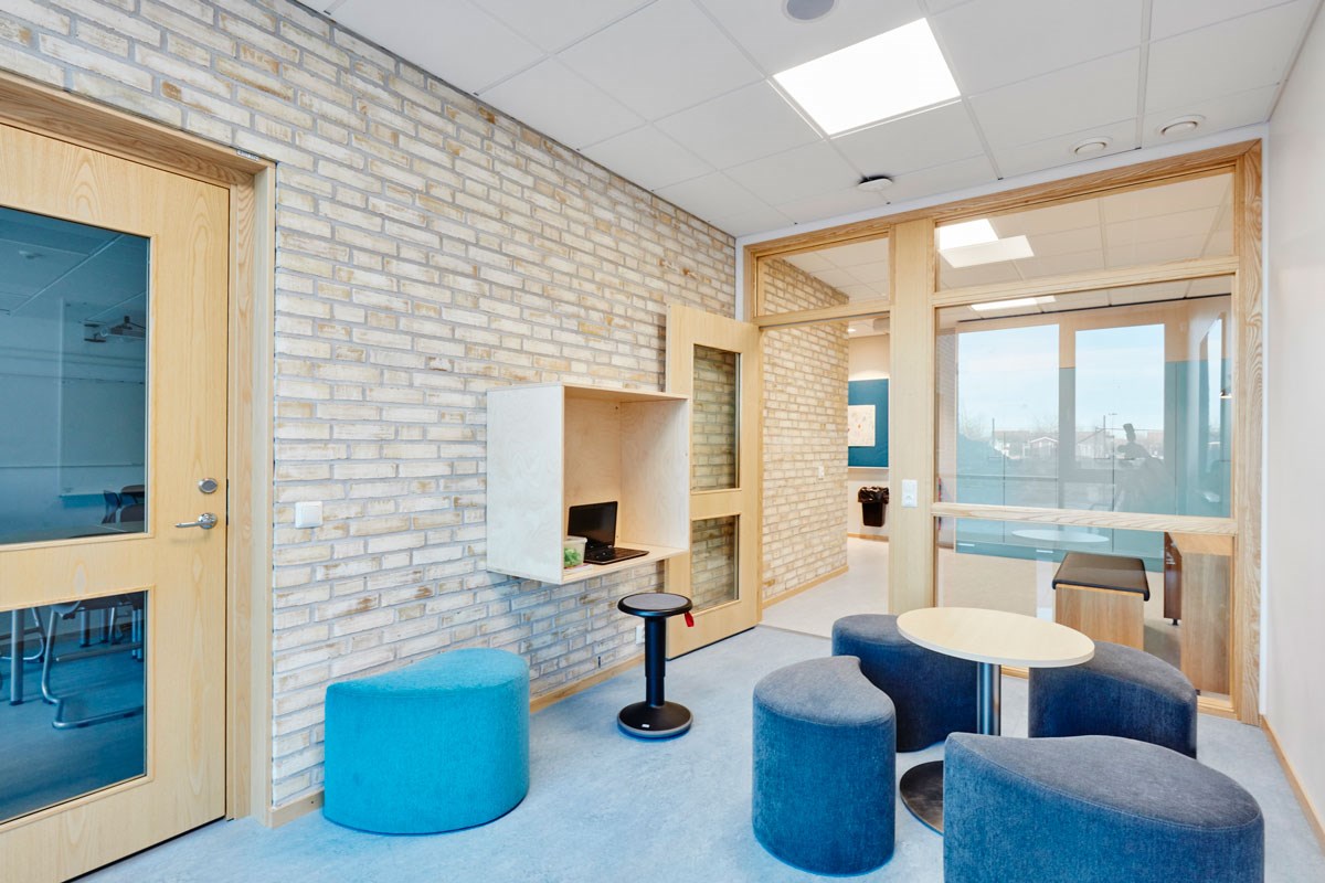 På skolen finnes læringsmiljøer spesielt tilrettelagt for elever med særlige behov. Fleksibilitet er avgjørende, sammen med behovet for lyddemping og en viss grad av avskildhet.