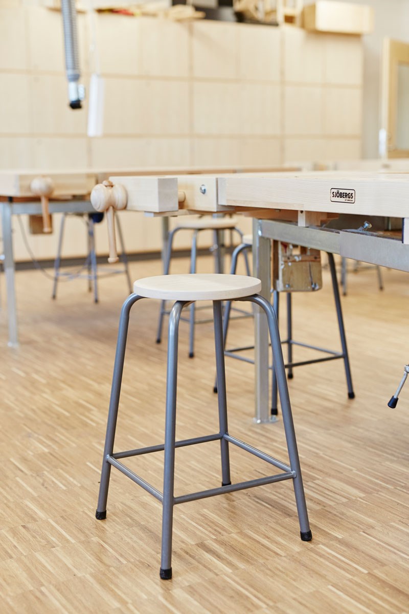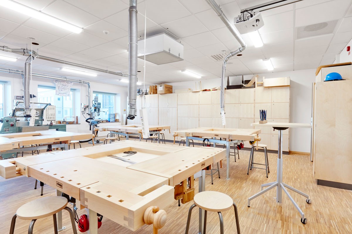 Sløydsalene på Västervångskolan er store og lyse. Tresløydsalen har toppmoderne utstyr. Her har sikkerhet, holdbare materialer og god oppbevaring vært i fokus. Innredningen består av den klassiske krakken Nico med fotstøtte, Sjöbergs høvelbenk samt oppbevaringsskap fra Lekolars oppbevaringsserie Norden.