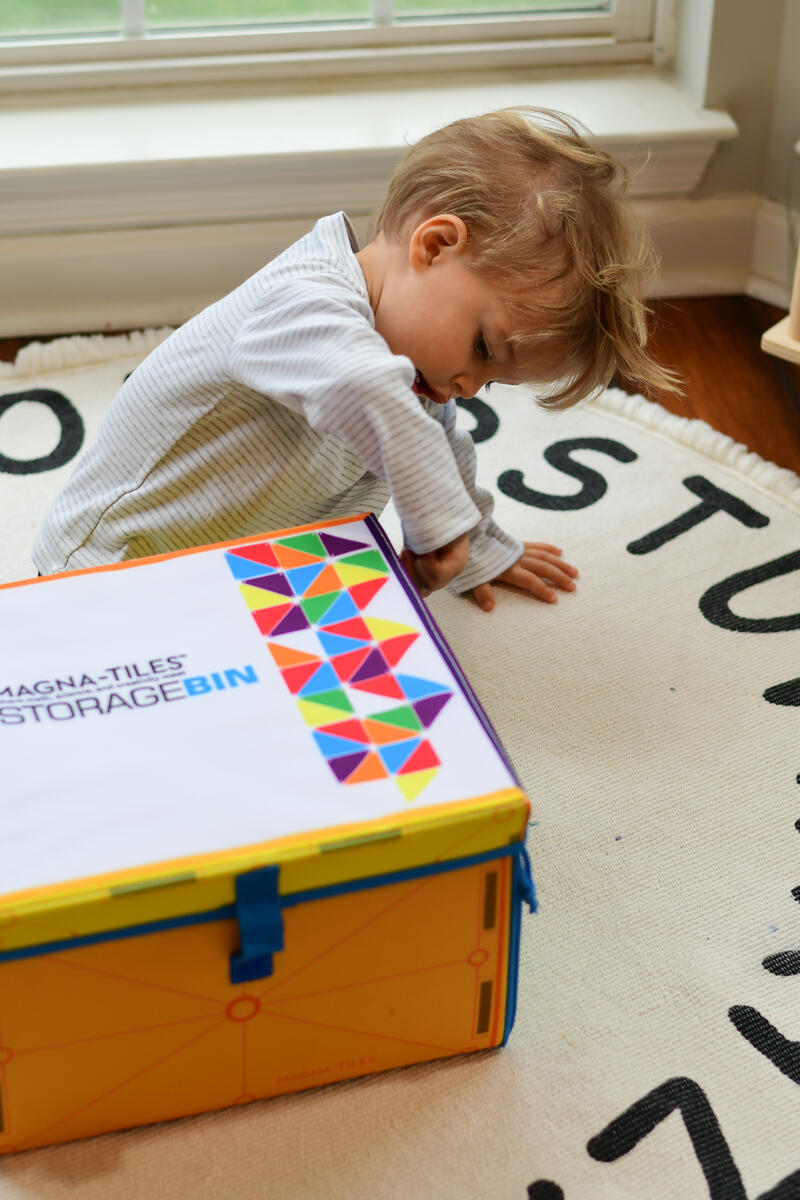 En praktisk oppbevaringsløsning for Magna Tiles byggeplater. Fungerer også som en behagelig lekematte å bygge på. Laget av slitesterkt materiale som lett rengjøres med en fuktig klut. Vesken rommer opptil 300 Magna-Tiles og har robuste sidehåndtak. Fra 3 år.