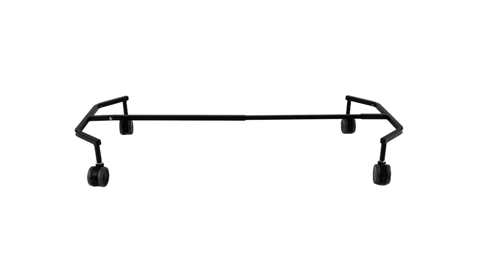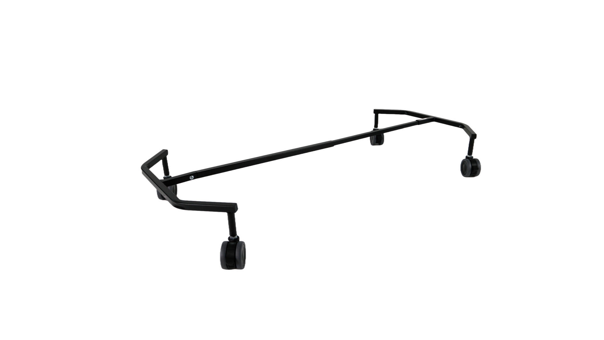 Stativ i svartlakkert metall med 4 hjul, hvorav 2 er låsbare. Gjør det lettere å flytte stabelbare senger, art.nr. 156075. Opptil 20 senger per stativ. Mål: L131xB60xH18 cm.