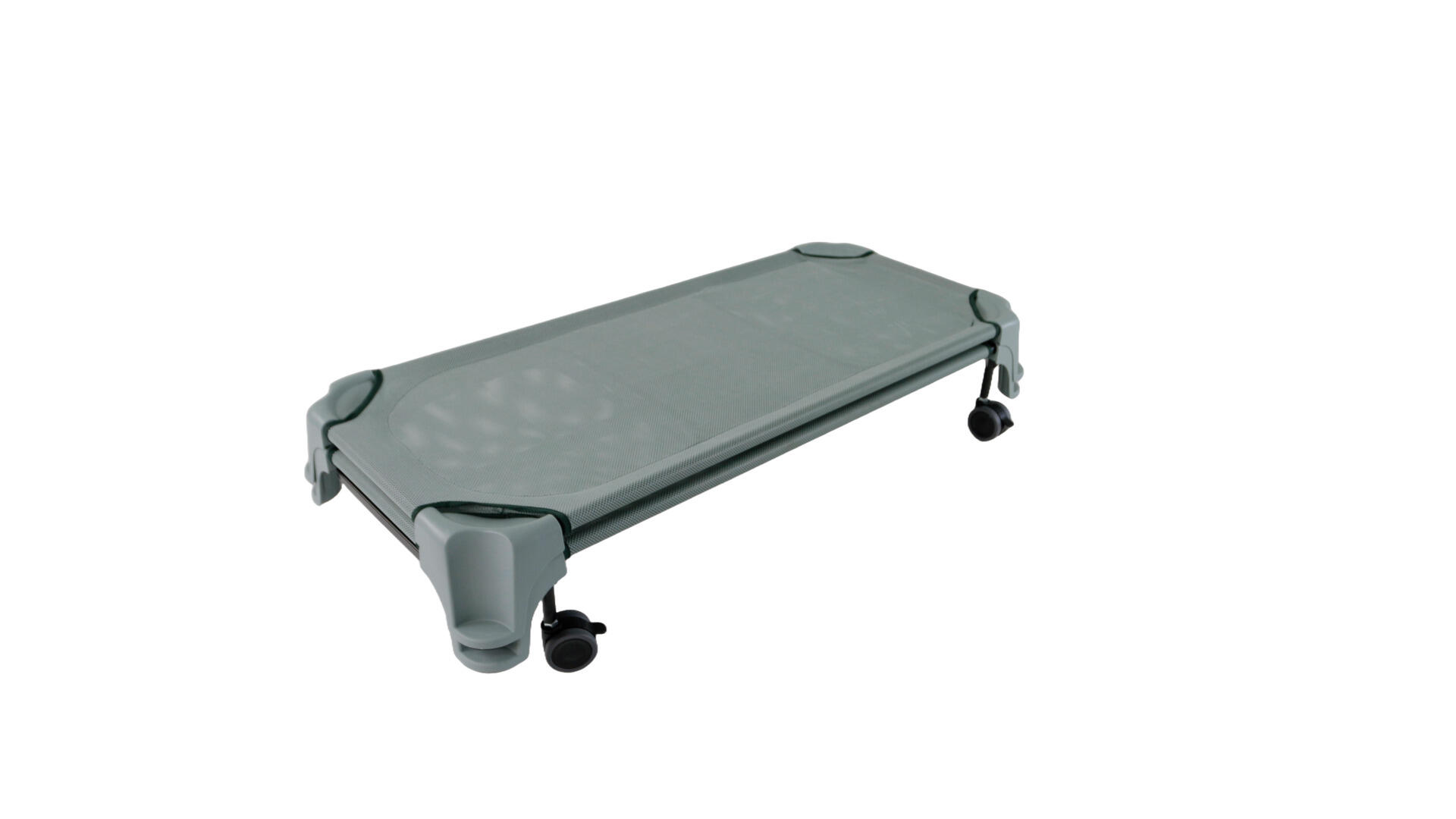 Sengebunn av polyesterstoff for god ventilasjon. Monteres enkelt med sterk borrelås og har en praktisk oppbevaringslomme på undersiden. Enkel å rengjøre med en fuktig klut. Sengen er lett å flytte og har myke, avrundede former. Stabile sengeben av PP og rammeverk av metall. Vekt: 2,5 kg. Madrass og madrasstrekk selges separat. Mål: L132xB60xH15 cm, liggemål: L123xB50 cm. PVC-fri.
