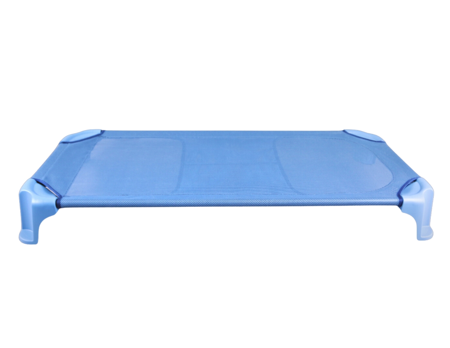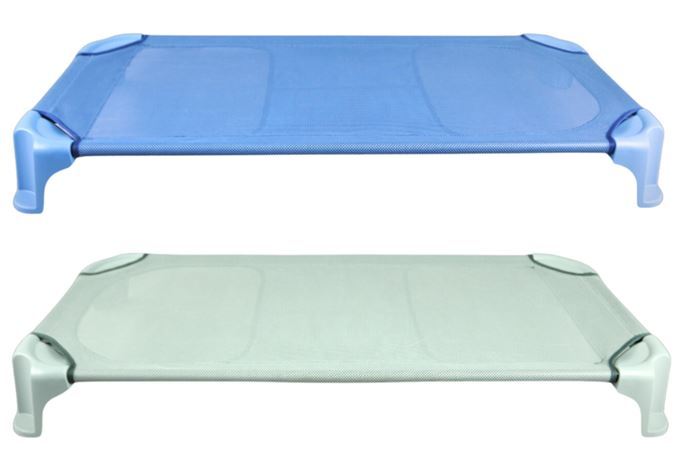 En populær hvileseng; stableseng som er lett å flytte og har myke runde former. Overdelen er av vinyl som er lett å rengjøre, og polyester som puster. Overtrekket festes med sterk borrelås som man enkelt tar av for vask. Mål: 132x55,7x20cm. Sengemål: 130x52x20 cm. Ved stabling legger hver seng til omtrent 6 cm i høyden. Enkel montering uten verktøy.