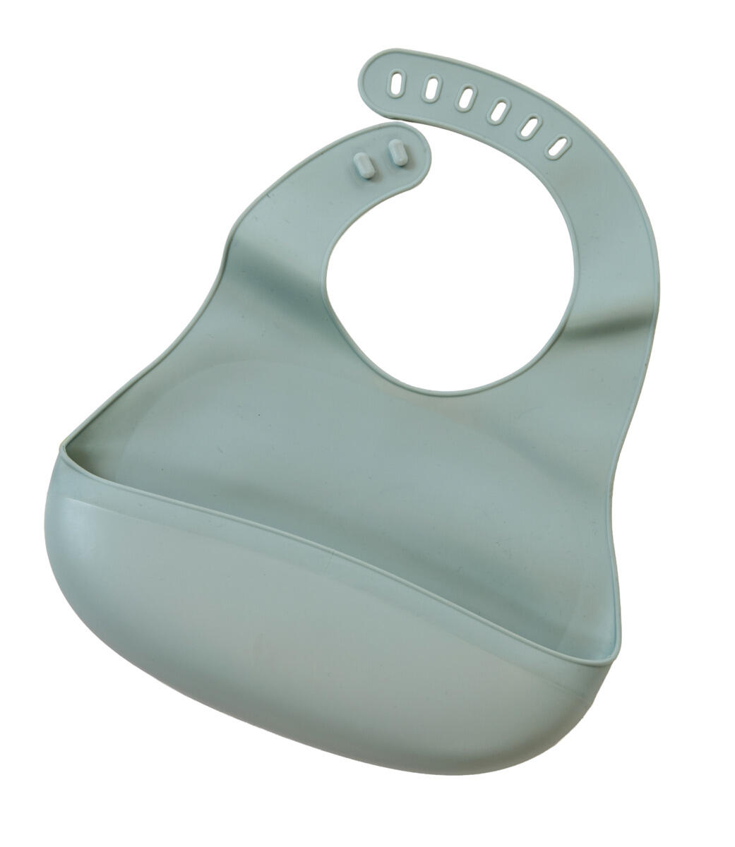 En litt stiv smekke som er praktisk og enkel å rengjøre under rennende vann eller i oppvaskmaskinen. Justerbar lukning i halsen. Selges i assorterte farger. Lengde 30 cm, bredde 20 cm. Av LDPE plast. Fra 6 måneder.