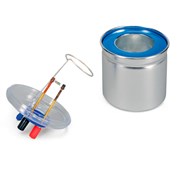 Kalorimeter for å bestemme den spesifikke varmekapasiteten til faste stoffer og væsker og for å måle elektrisk varmeekvivalent. To gjensidig isolerte aluminiumskopper med lokk som har gummipropp. Gummiproppen har borehull for termometer ogomrøring samt innebygget varmesløyfe. Kapasitet på den isolerte beholderen: ca. 150 ml. Tilkobling: 4 mm stikkontakt. Elektrisk varmeovn: 6 V / 2 A maks.