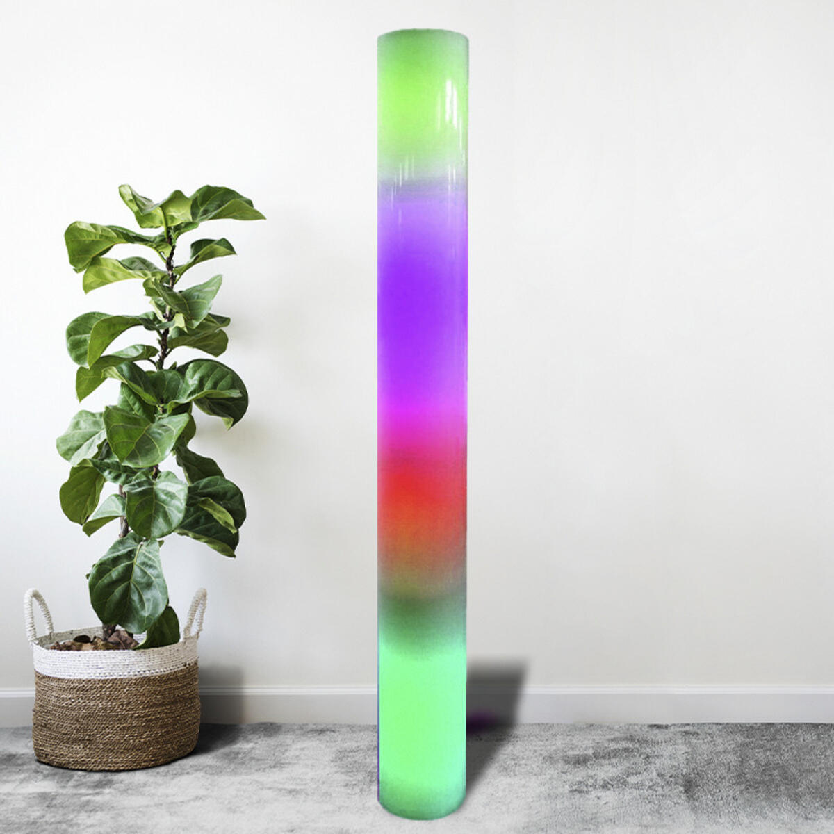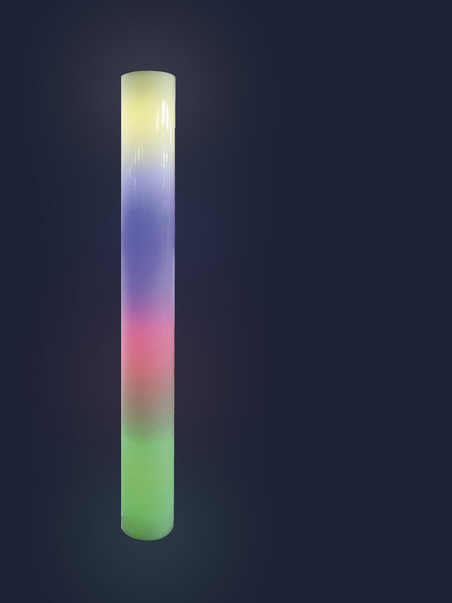 Høy smal søyle som skifter farger med forskjellige sekvenser etter eget valg. Søyle som fungerer som et sanserør, men uten glass og vann. Leveres med fjernkontroll og holder. Mål: 200x23 cm.