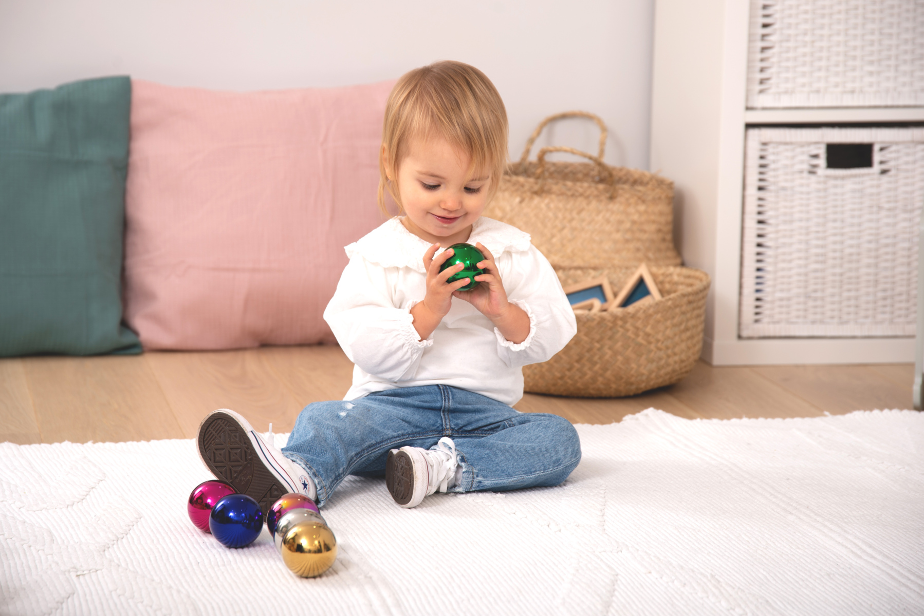 6 stk. Sensoriske, reflekterende og mystiske kuler som føles annerledes når du snurrer eller rister dem. Noen rangler. De er lette og glatte. Mål: 6 cm. Laget av rustfritt stål. PVC-fri. Fra 0 år.
