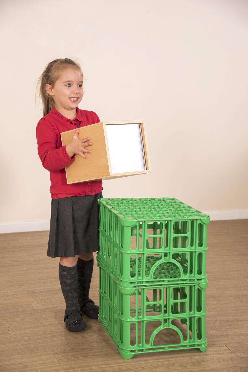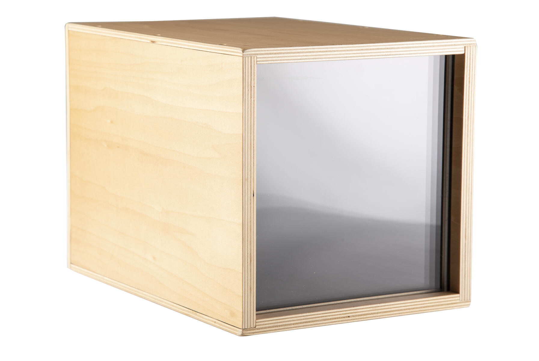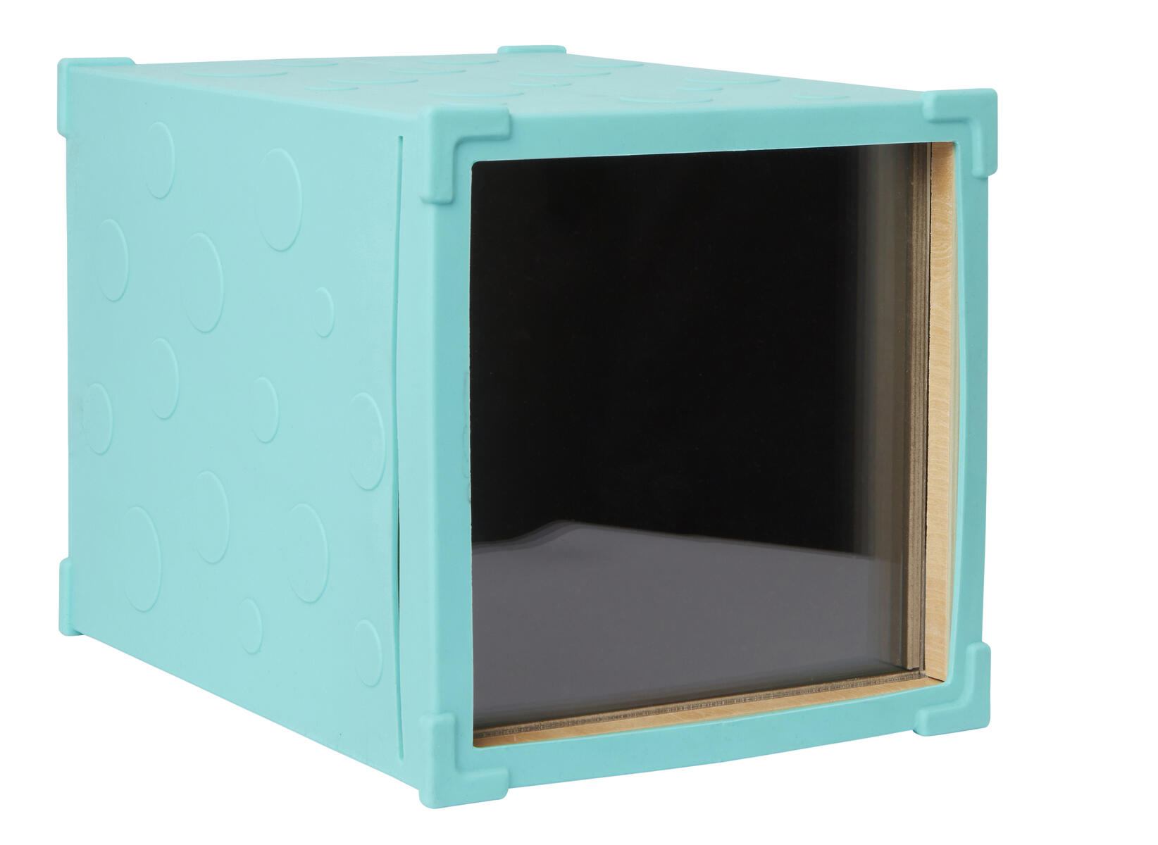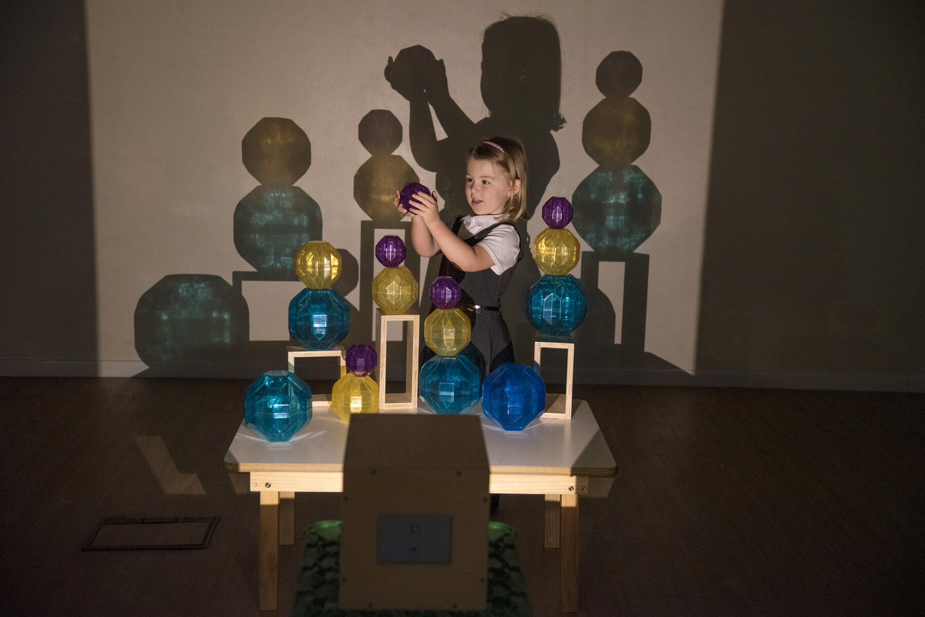 En sensorisk lyskilde som barna selv kan jobbe med og kontrollere. Eksperimenter med skygger og byggemateriell f.eks. med gjennomsiktige og vanlige klosser for å se forskjellen. Lyset er ufarlig for barns øyne. Gir kun lys, kan ikke kobles. Lades i vegguttak med medfølgende ledning, Beskyttelse i silikon følger med. Av tre og akryl. Fra 3 år.