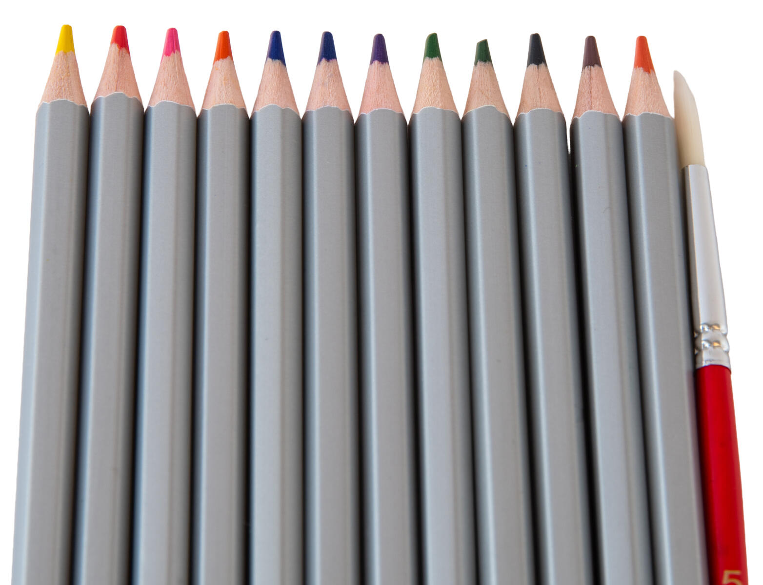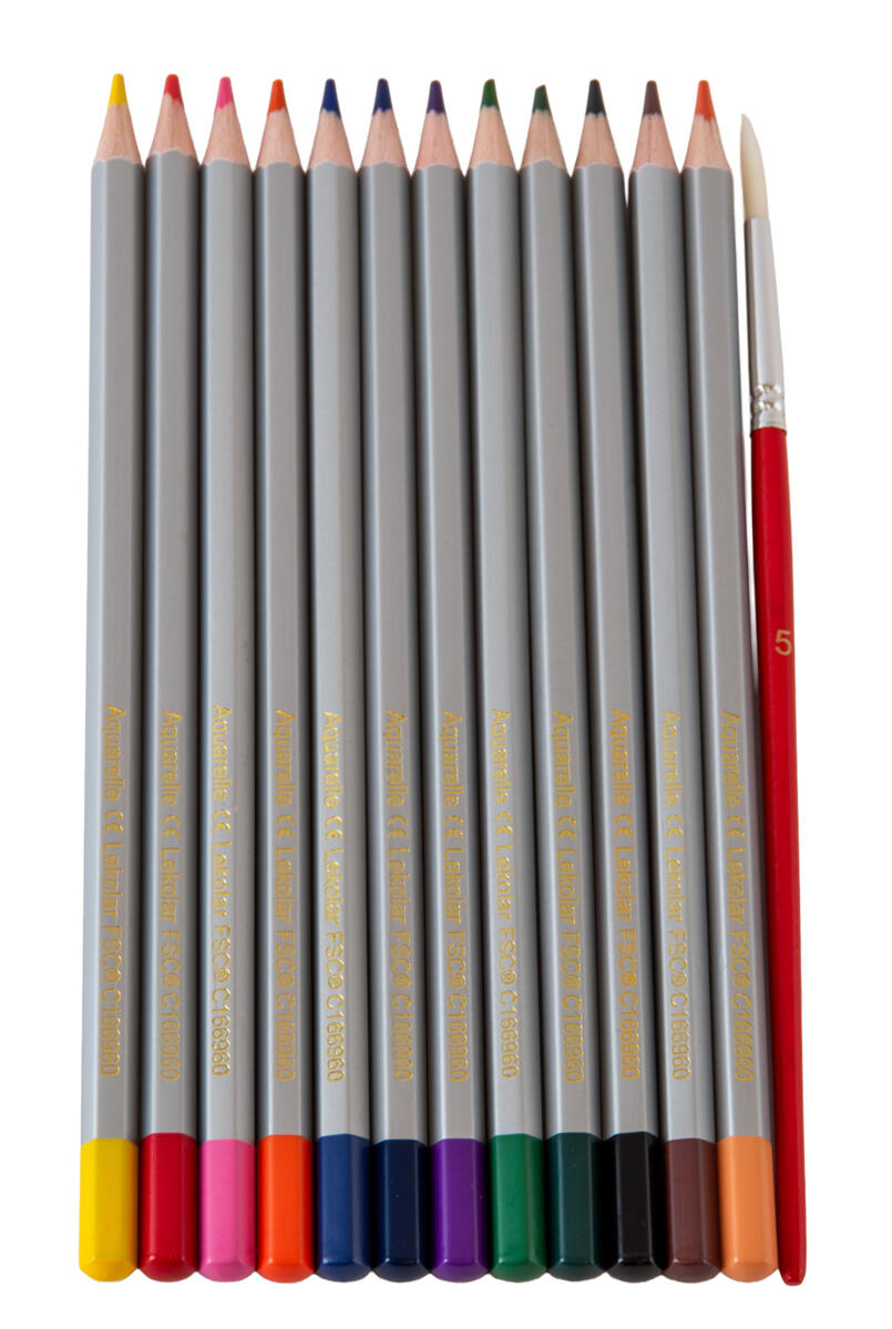 12 stk/pk. Fargeblyanter som passer til både tørr fargelegging og akvarell. Ekstra myk, holdbar fargstift av kvalitetspigment. Fargene kan blandes med hverandre og gir en akvarelleffekt når man maler over med vann. Hexagonal blyant med lakkert topp. Finns i fargene lilla, aprikos, oransje, mørkgrønn, grønn, mørk blå, blå, rød, rosa, svart, gul, brun og en pensel.