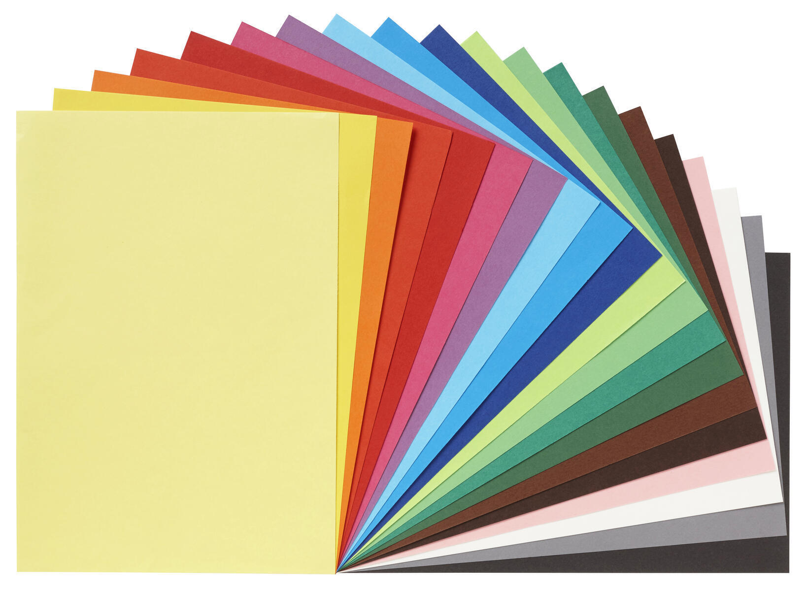 200 ark/pk. 220 g. Slett, halvmatt overflate. Passer for litt strørre og grover detaljer som monteringspapp til kort mm. Kan klippes og skjæres i. 20 farger; Sitrongul, gul, oransje, rød, mørk rød, cerise, fiolett, lys blå, cyan, ultramarin, limegrønn, lys grønn, grønn, mørk grønn, brun, mørk brun, lys rosa, eggehvit, grå og svart. 10 ark/farge. Svanemerket, lisensnummer 30440099