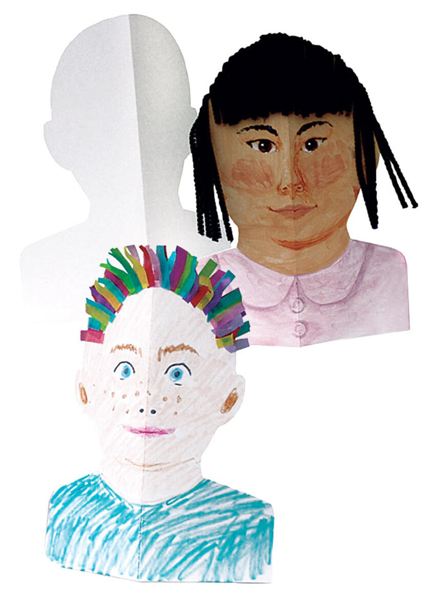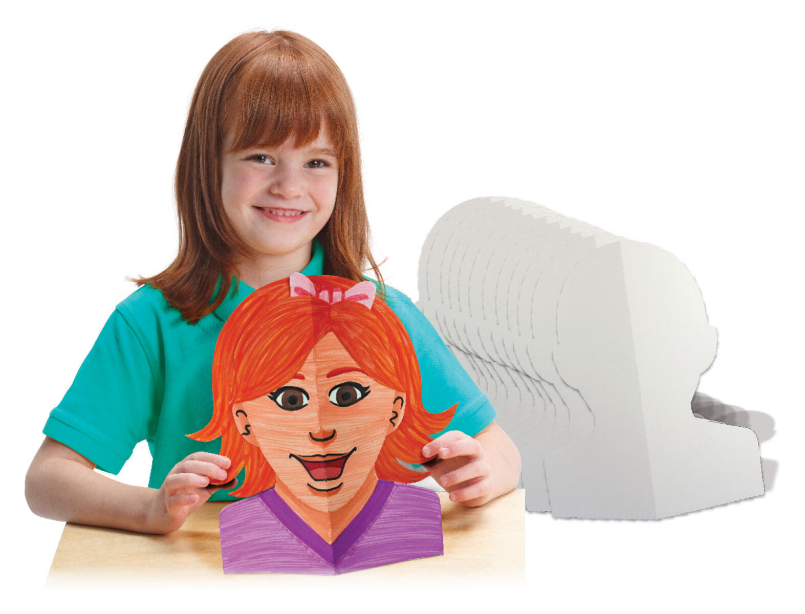 40 stk/pk. Lag selvportretter som kan brukes til å vise våre forskjeller og likheter. Portrettet kan stå alene og kan brettes for å gjøre det 3-dimensjonalt. Mål: 15,5x23 cm.
