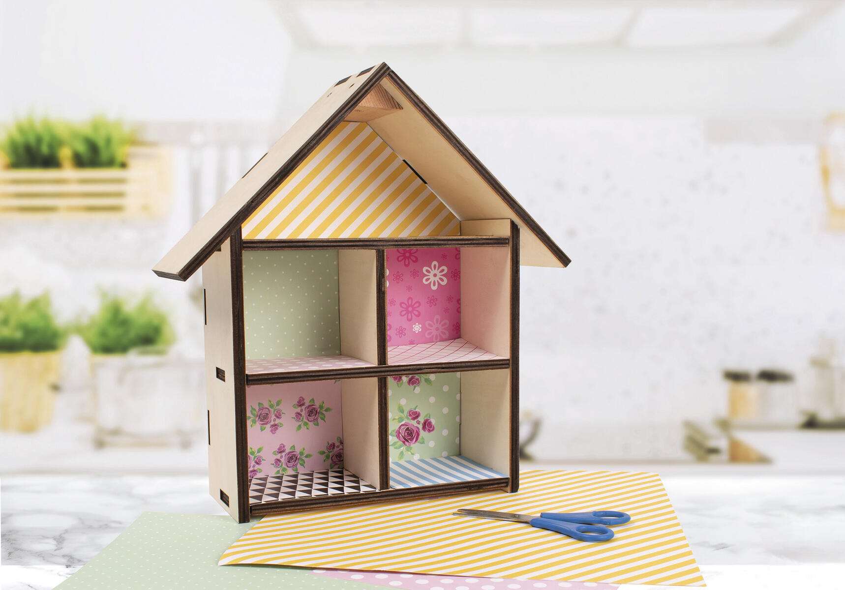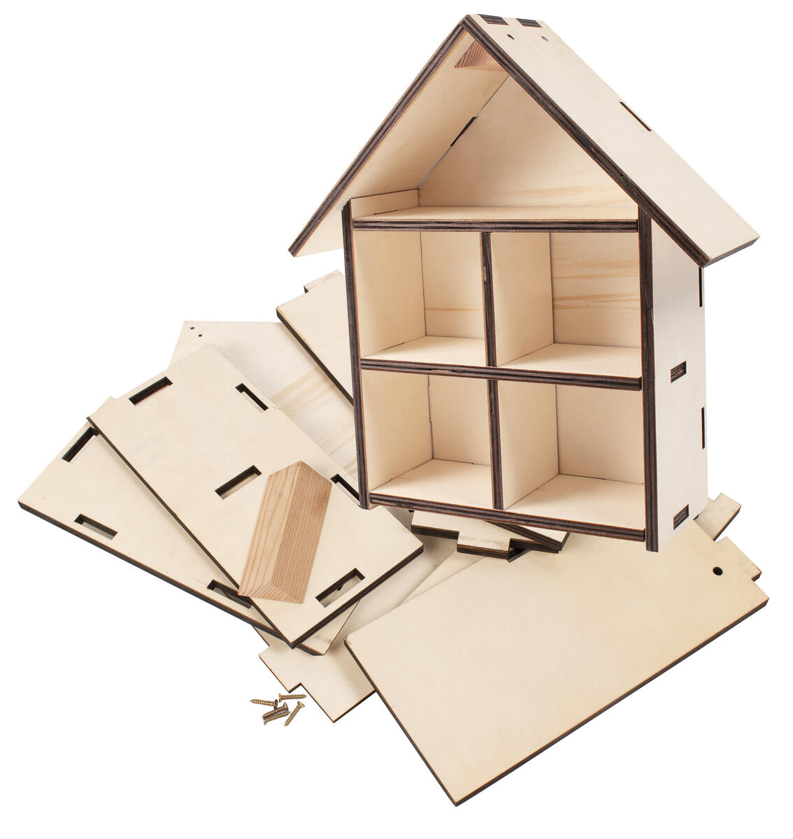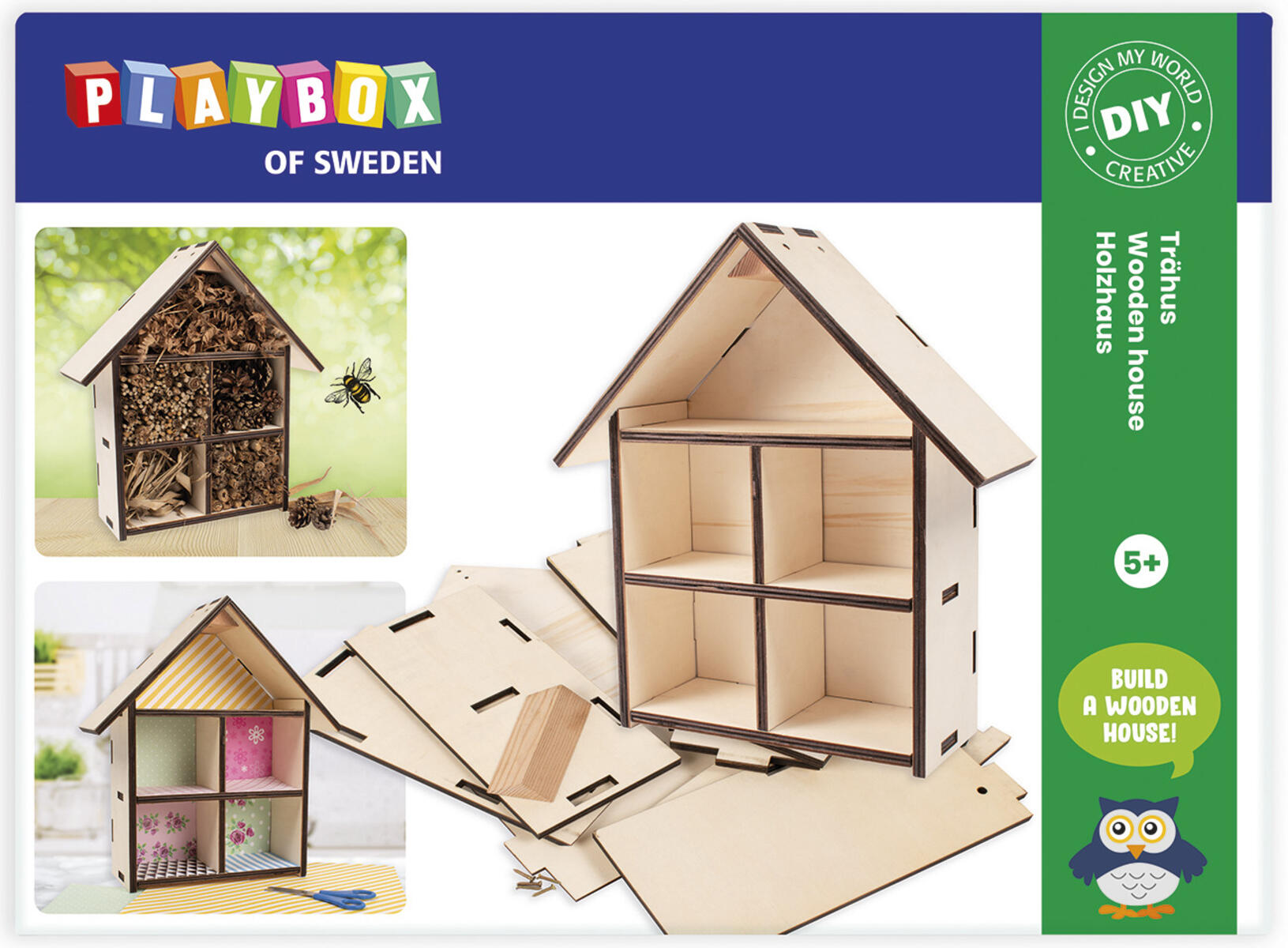Alt du trenger for å bygge ditt eget lille trehus. Bruk huset som et dukkehus eller lag et insekthotell til å henge utendørs. Mal og pynt det eller bruk det ubehandlet. Mål 34x23,5x10 cm. Fra 5 år. Inkluderer en byggesett for trehuset og en beskrivelse