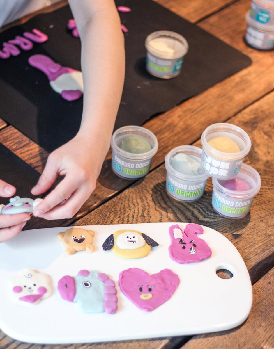 Leire som alltid holder seg myk og smidig. Fargene kan blandes med hverandre. Fargen smitter ikke av på hud eller tekstiler. Tørker ikke. Kan ikke brennes. Inneholder fargene hvit, gul, solgul, oransje, rød, cerise, lys rosa, aprikos, brun, lys grønn, grønn, lys blå, blå, lilla, svart. Uten gluten, soya og nøtter. Fra 3 år.