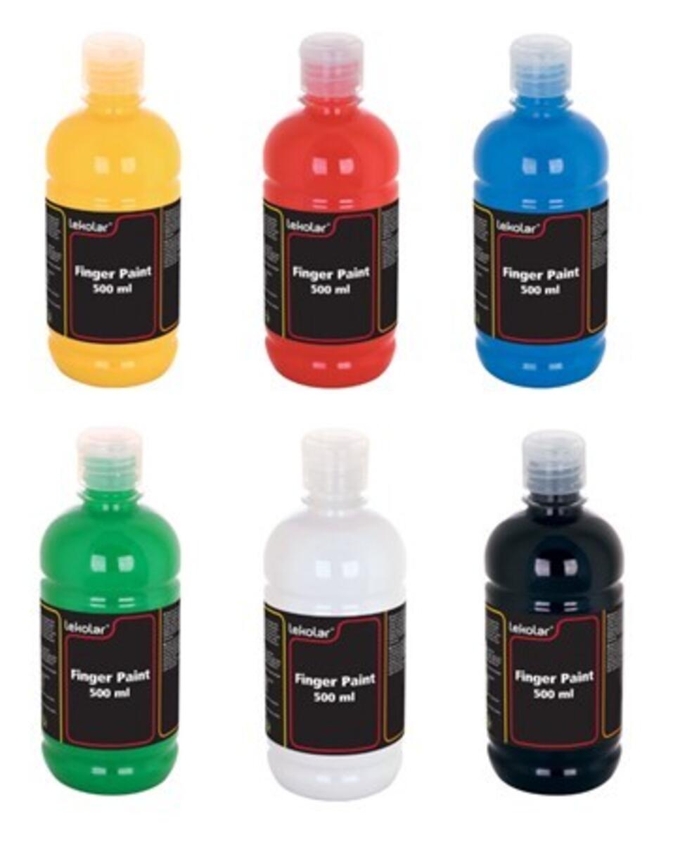 6x500 ml/sett. Vannbasert kremet fingermaling. Matt og hurtigtørkende med god dekkevne. Inneholder gul, rød, blå, grønn, svart og hvit. Plastflaske med snapkork. Beskytt klær og underlag. Flekker på tekstiler og andre porøse materialer skal fjernes umiddelbart med lunkent vann, eventuelt med litt såpe. Uten egg, gluten og laktose. Barn under 3 år kan bruke malingen under oppsyn av voksne.
