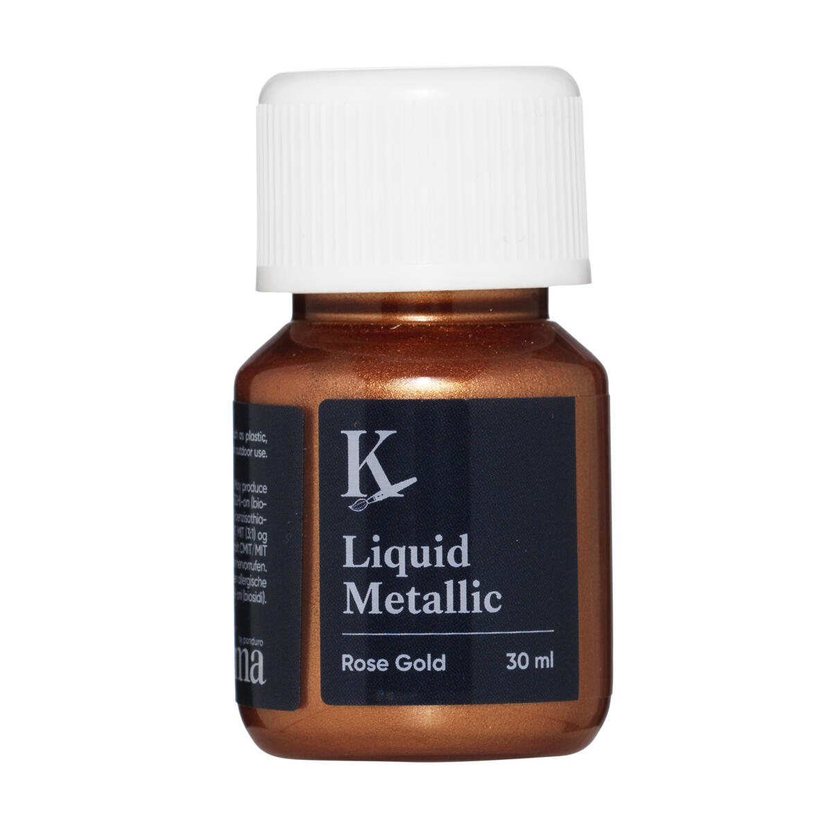 30 ml/pk. En vannbasert, tyktflytende metallicmaling med rik metallisk glans og god dekkevne. Passer for de fleste underlag som papir, lerret, plast, porselen, isopor, metall, stein, tre og glass. Tørketid 30 minutter. Malingen er kun beregnet for innendørs bruk og tåler ikke hånd- eller maskinvask.