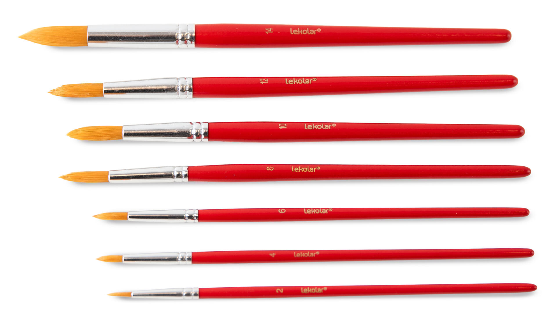 12 stk/pk. Holdbare malepensler med tett og fin syntetisk bust og spiss topp. Passer for både tynn og tykk flytende maling: akvarell, gouache/tempera, akryl og oljemaling. Busten har god form og kan brukes til store linjevariasjoner; fra veldig tynn til fyldige linjer. Skolepensler med kort, rødlakkert skaft av tre og med alimiunimsmansjett.