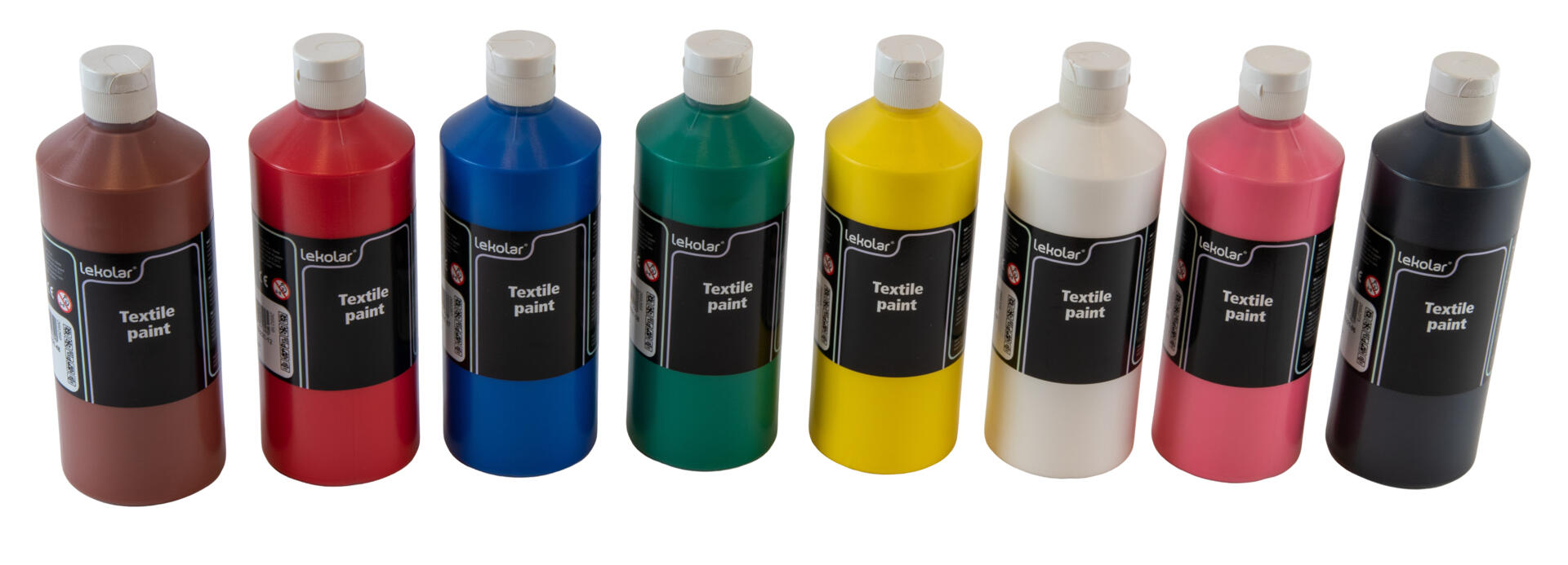8x500 ml. Tekstilmaling til maling og trykk. Passer best på lyse, cellulosebaserte stoff som bomull, lin, viskose mm. Mørke tekstiler grunnes med dekkhvit før dekorering. Fikseres med strykejern i fem minutter etter tørking. Kan da vaskes i opp til 40°C. Malingen kan sette flekker selv uten fiksering så beskytt derfor klær og underlag ved bruk. Inneholder dekkhvit, gul, rød, rosa, lilla, lysgrønn, grønn og svart.