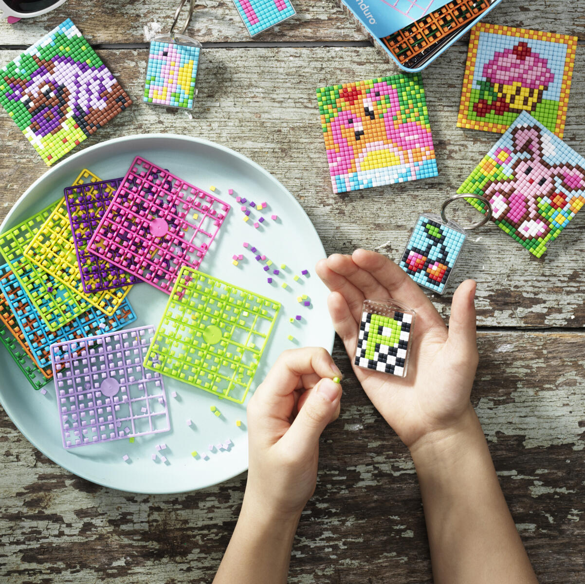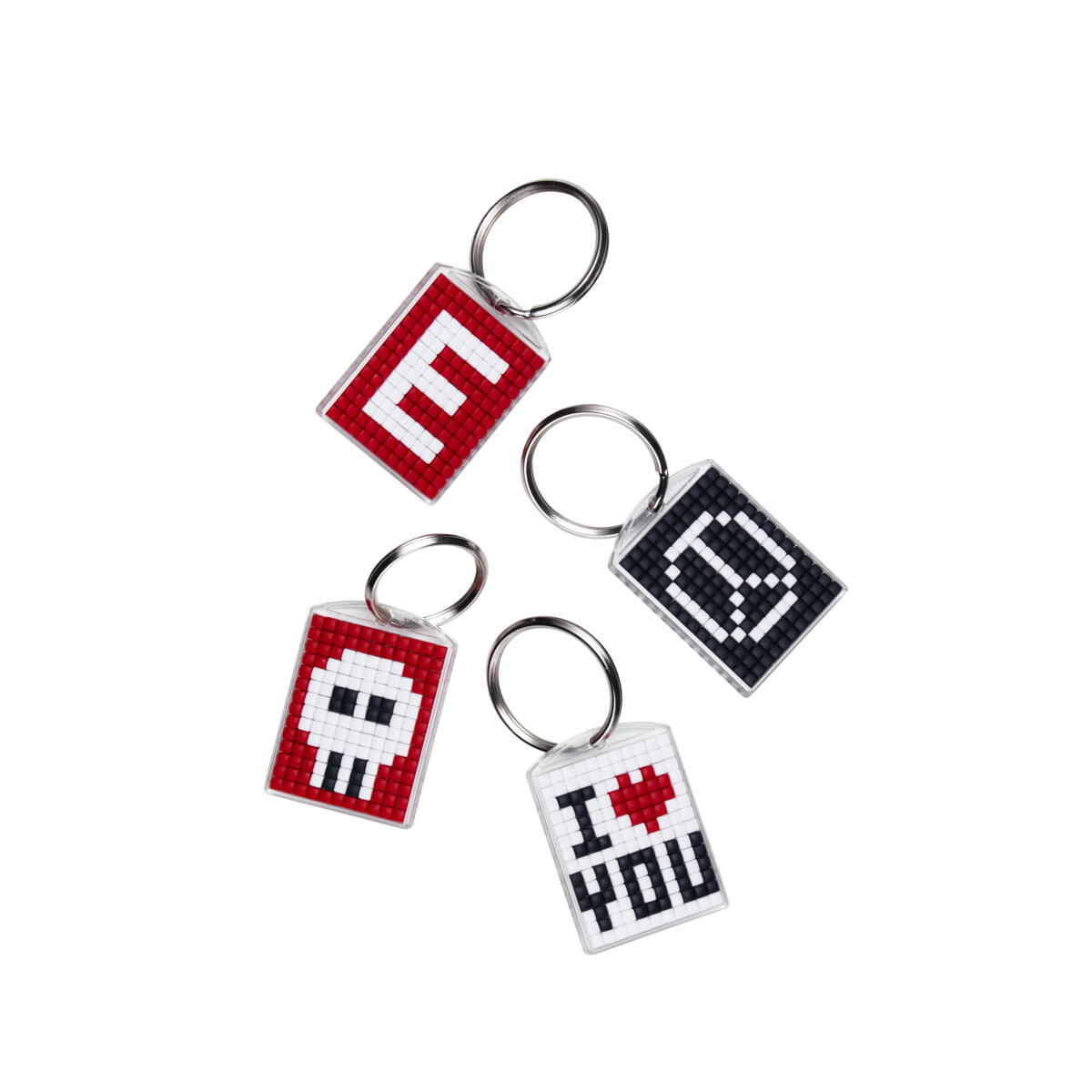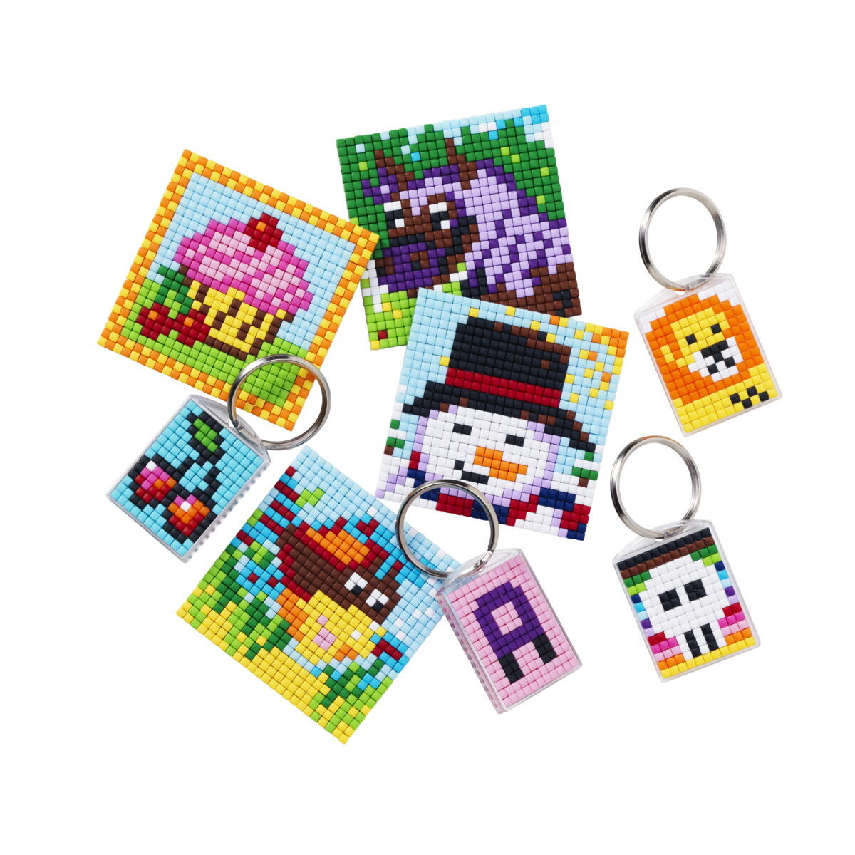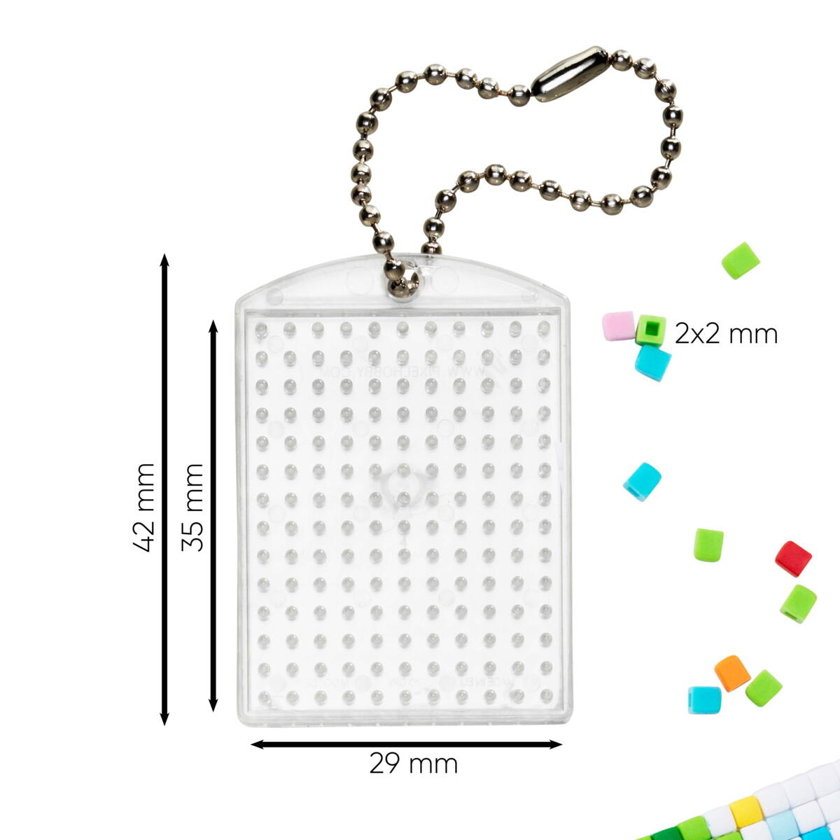 10 stk/pk. Nøkkelringsplate, baseplate for pixelperler. Mål: 3x4 cm, ring Ø 2,9 cm.