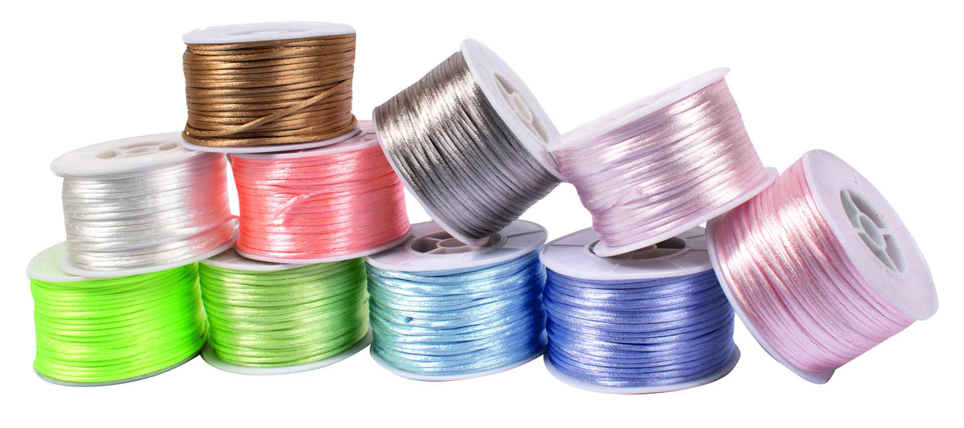 18m x 10 farger. Myk smykketråd som er perfekt til knytting, ikke elastisk. Gul, oransje, rød, cerise, lilla, lysblå, turkis, grønn, grå og brun. Ø1,7 mm. Av polyester.