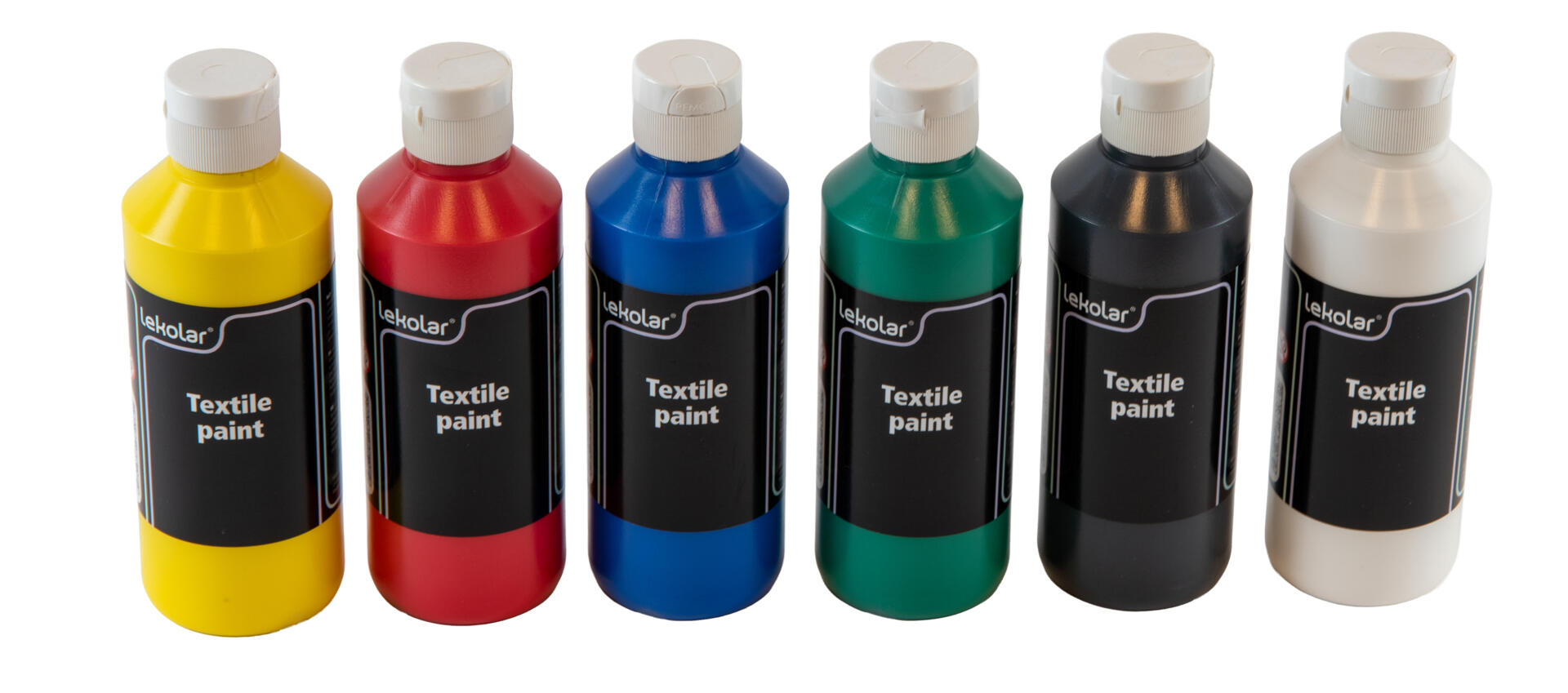 8x500 ml. Tekstilmaling til maling og trykk. Passer best på lyse, cellulosebaserte stoff som bomull, lin, viskose mm. Mørke tekstiler grunnes med dekkhvit før dekorering. Fikseres med strykejern i fem minutter etter tørking. Kan da vaskes i opp til 40°C. Malingen kan sette flekker selv uten fiksering så beskytt derfor klær og underlag ved bruk. Inneholder dekkhvit, gul, rød, rosa, lilla, lysgrønn, grønn og svart.