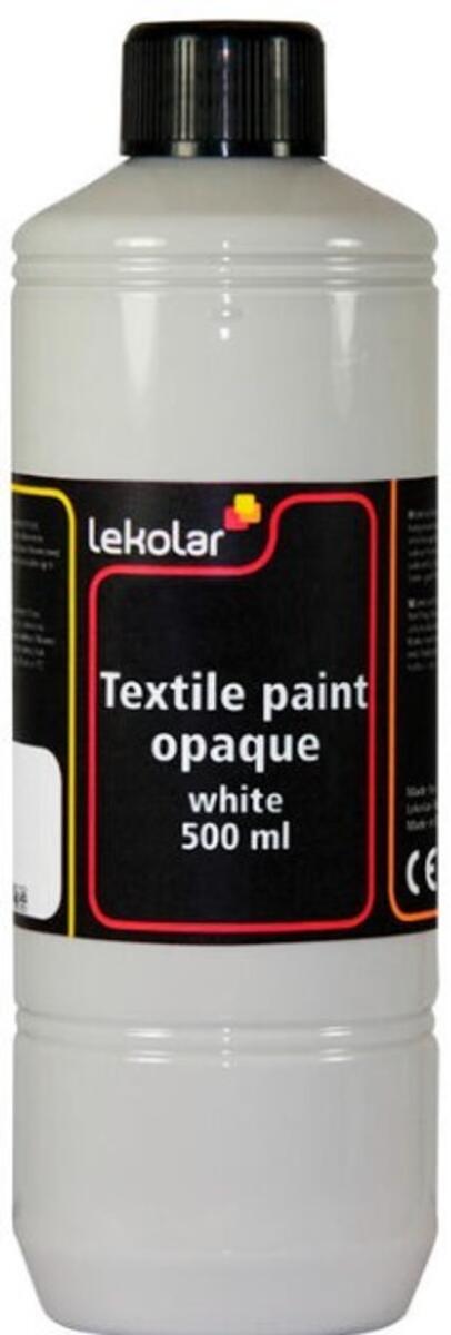 Dekkhvit tekstilmaling til maling og trykk. Passer best på cellulosebaserte stoff som bomull, lin, viskose mm. Kan brukes som hvit eller grunning på mørke tekstiler. Fikseres med strykejern i fem minutter etter tørking. Kan da vaskes i opp til 40°C. Malingen kan sette flekker selv uten fiksering så beskytt derfor klær og underlag ved bruk. Kompletter med vår praktiske pumpe 41007.