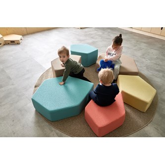 Podie for barnehage. Finnes i manga ulike varianter som kan bygges sammen i uendelige former. Kan også bygges sammen med vårt FIXA oppbevaringssystem både på bredden og dybden. Finnes i 10 ulike former. De kan bli scene, skog, ulike kjøretøy, utstilling, resteplass...bare fantasien setter grenser. Laget i 100% bjørk kryssfiner. Alle deler finnes i 3 høyder. Podie med hvitpigmentert topp er helt i kryssfiner, deandre med farget høytrykkslaminat på toppen. Tørkes av med ren med fuktig klut. Mål: 59x36 cm. Svanemerket, lisensnummer 5031 0099.