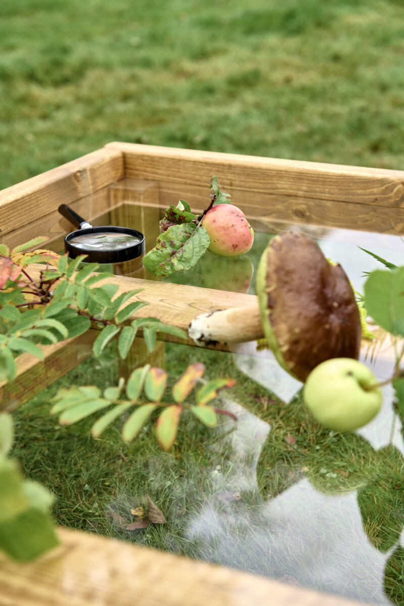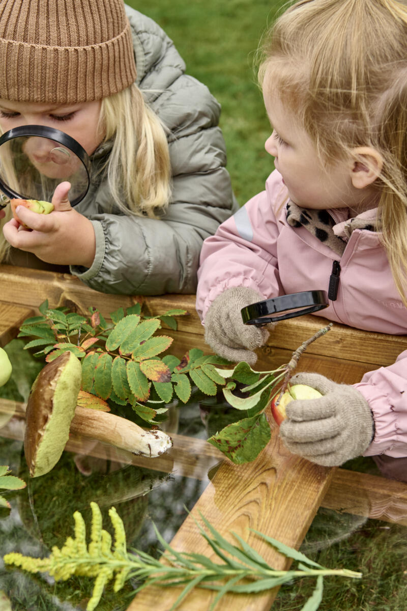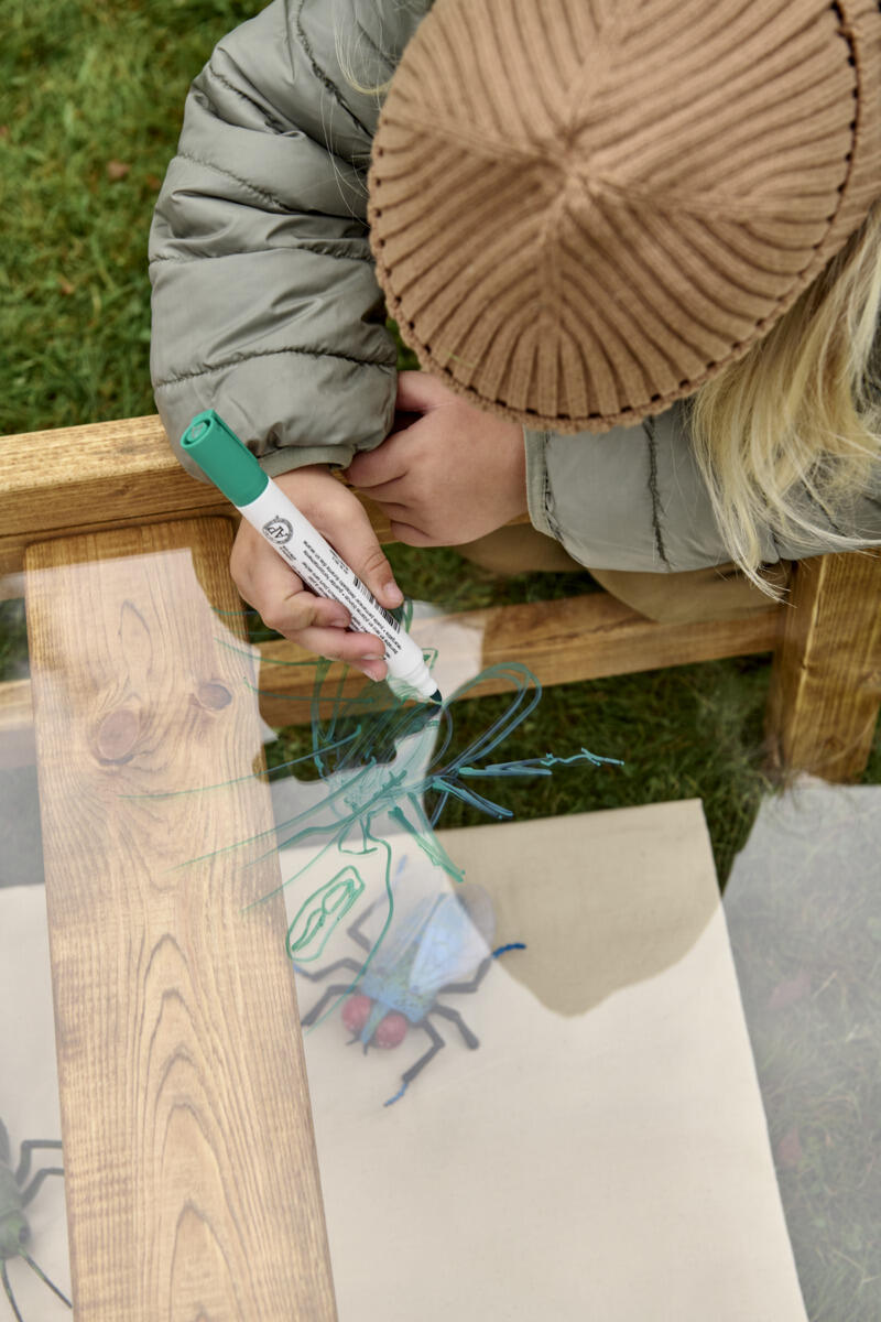 Vårt atelierbord oppmuntrer til utforsking og skapende aktivitet i utemiljøet. Bordet har en romslig bordflate i klart pleksiglass hvor flere barn kan leke, skape og lære sammen. Barna kan tegne direkte på bordflaten med avtørkbar maling, eller eksperimentere med blader, sand, kongler og andre naturmaterialer. Bordet fungerer også utmerket som samlingspunkt, for samarbeid, rollelek eller som arbeidsbenk. Laget av FSC-sertifisert furu, overflatebehandlet med oljebasert lakk. For forankring i bakken trengs 4 stk av 151134, eller 151133 for overflatemontering. Leveres umontert.