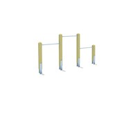 Småbarnshuske med 2 seter i gummi. Dobbel huskestativ. Tre stk tresolper og to beltehusker i mellom. Selve sitteplaten er i gummi og er 40 cm over bakken. Huskelenkene er i kjetting og tykk tau. Til lekeplasser. Mål: L100xB320xH160 cm. Fra 1 år. Arealbehov 660x340 cm. Fallhøyde 80 cm. Sikkerhetsssone: 23 m². Monteringstid: 1 person a 4 timer.