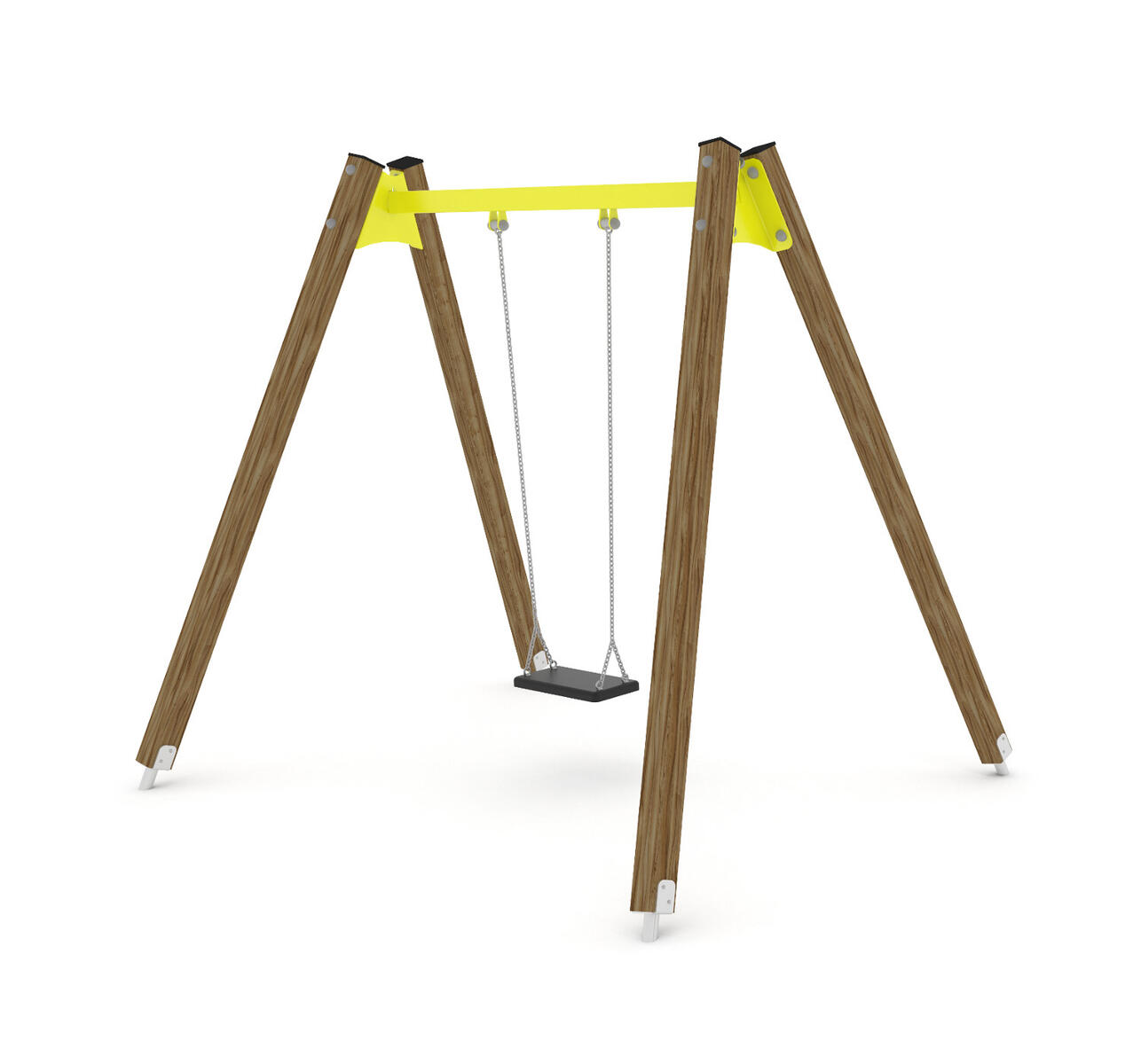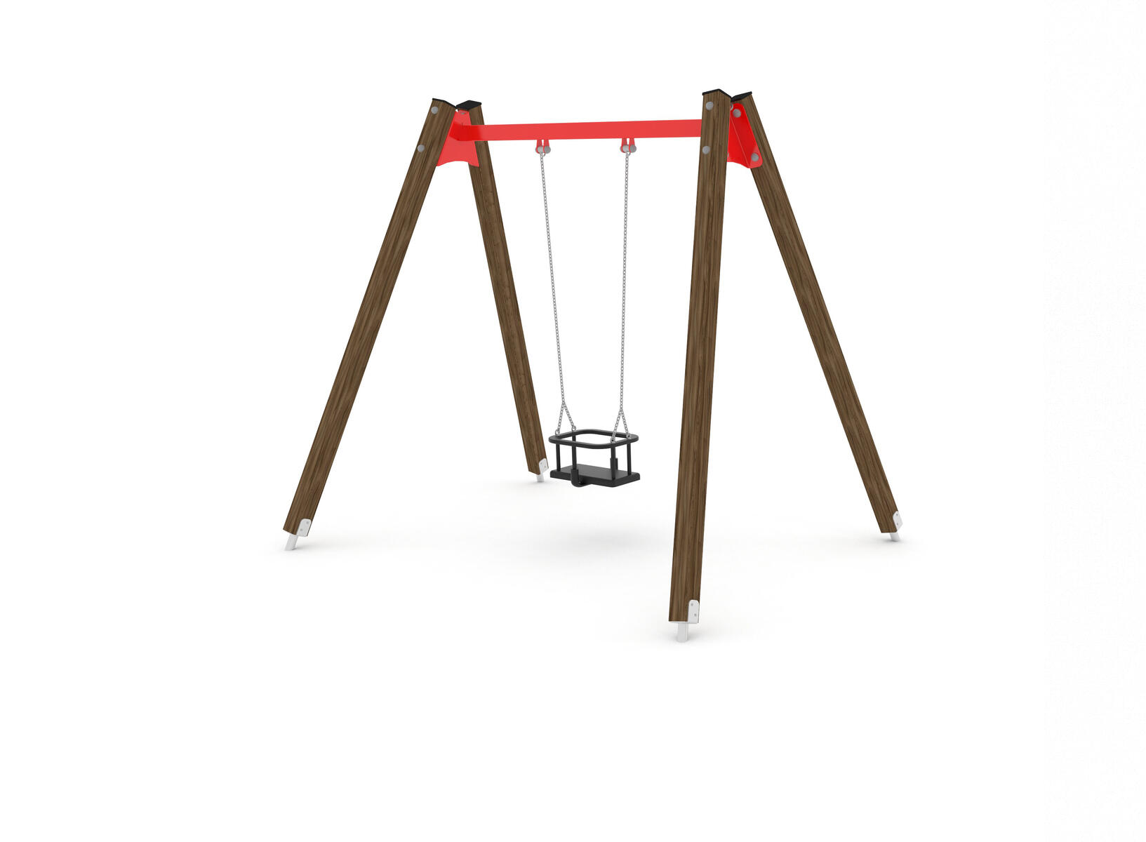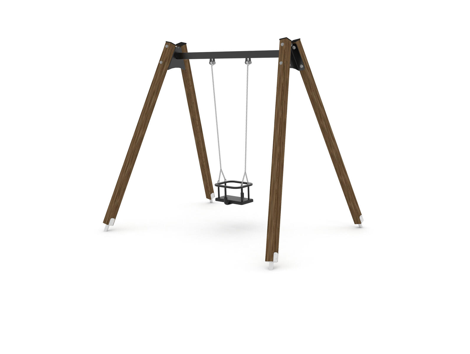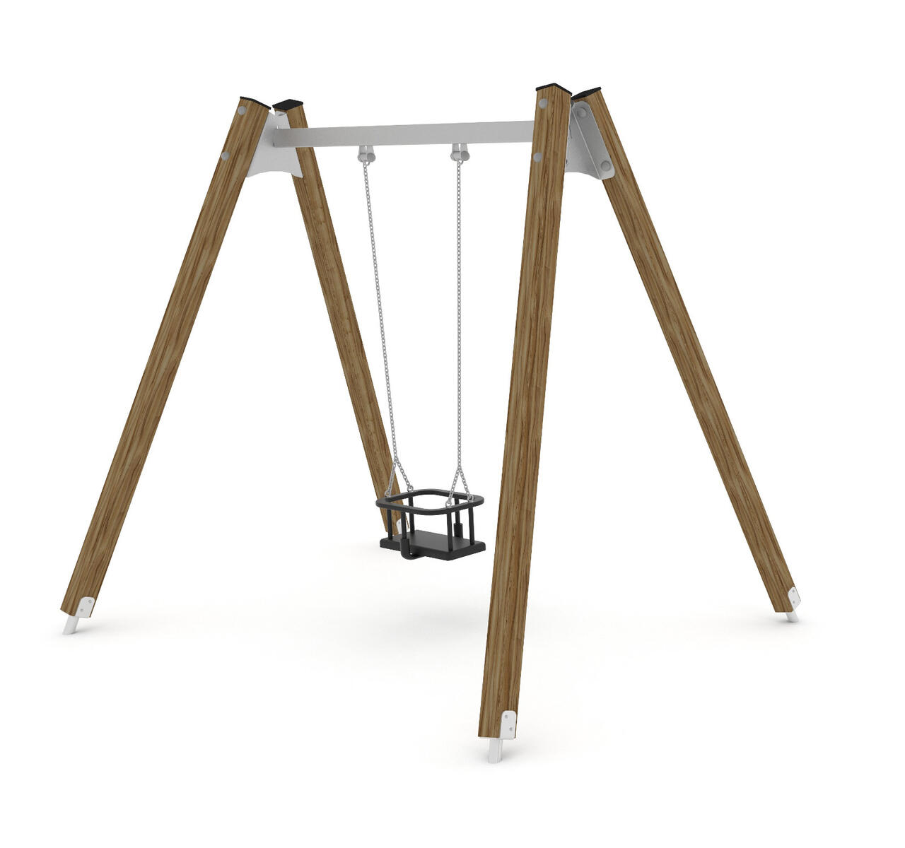 Et tidløst og slitesterkt huskesete laget av gummi med galvaniserte kjeder. Setet leveres komplett med festeanordning.