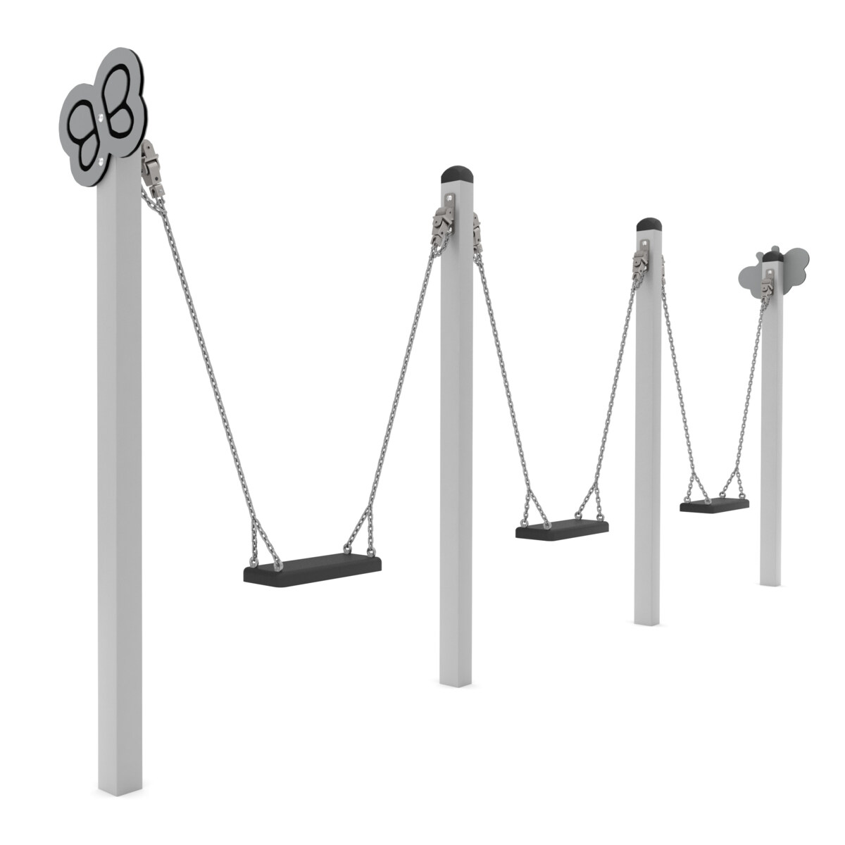 Et tidløst og slitesterkt huskesete laget av gummi med galvaniserte kjeder. Setet leveres komplett med festeanordning.