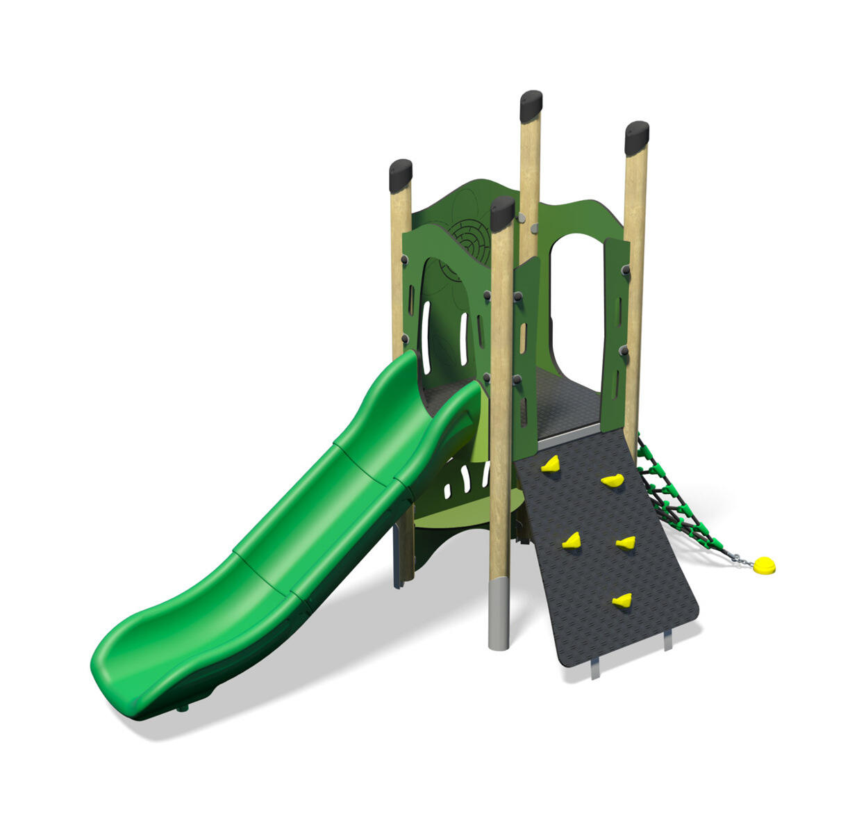 En kombinasjonslek som byr på ekstra spenning med sin høyde og en fartsfylt sklie. Passer perfekt for yngre barn som vil utfordre sine klatreferdigheter, komme seg over hindringer, stimulere sansene og nyte bevegelse og fart i leken. Laget av limtre, HPL og sklie i polyetylen. Fargealternativer og sklie i rustfritt stål er tilgjengelig på forespørsel.