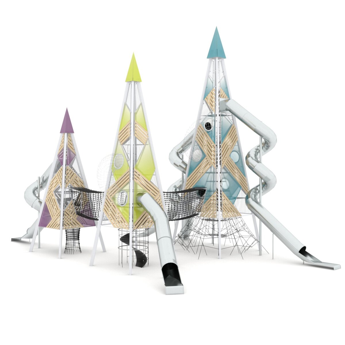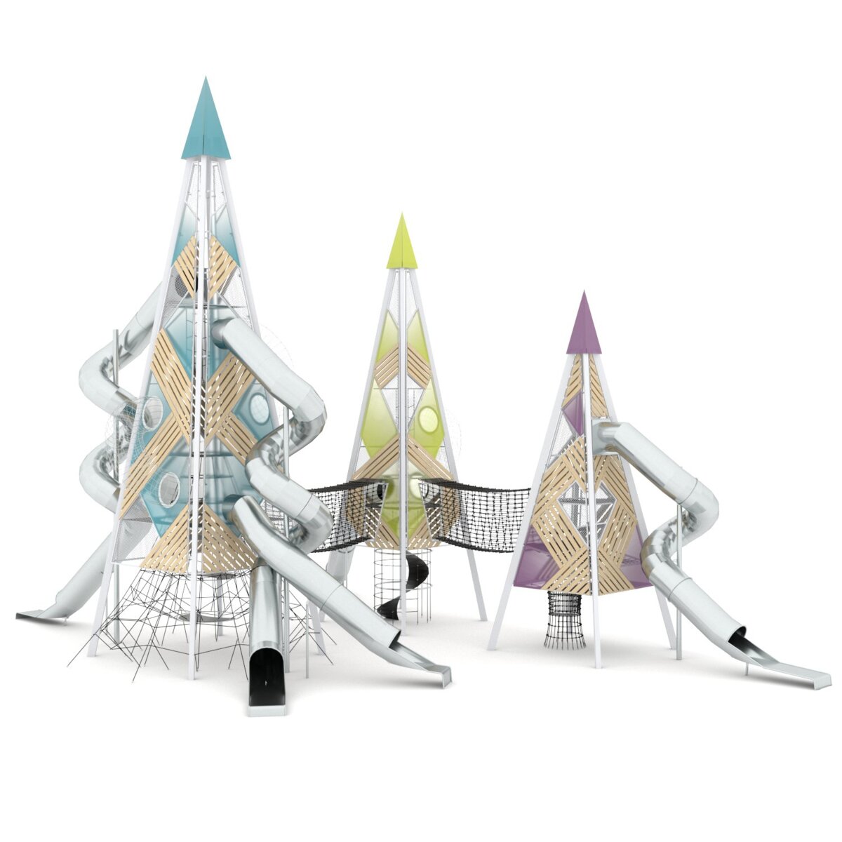 Å klatre høyt i tårn som nesten når opp til himmelen er både spennende og utfordrende. Gjennom klatring utvikler barna sin motorikk, koordinasjon, balanse og kroppsbevissthet. MAXX er et modulært system av høyeste kvalitet. Denne gigantiske modellen består av 3 tårn i forskjellige høyder, alle med ulike klatreutfordringer, hengebro mellom tårnene og 5 fartsfylte tunnelsklier, hvorav 3 er spiralformede. Modulene er laget av varmgalvanisert stål med innslag av robinia og UV-bestandig farget polykarbonat. Ved montering/installasjon skal alltid manualen som medfølger produktet ved levering benyttes. Den nyeste versjonen er tilgjengelig på forespørsel.
