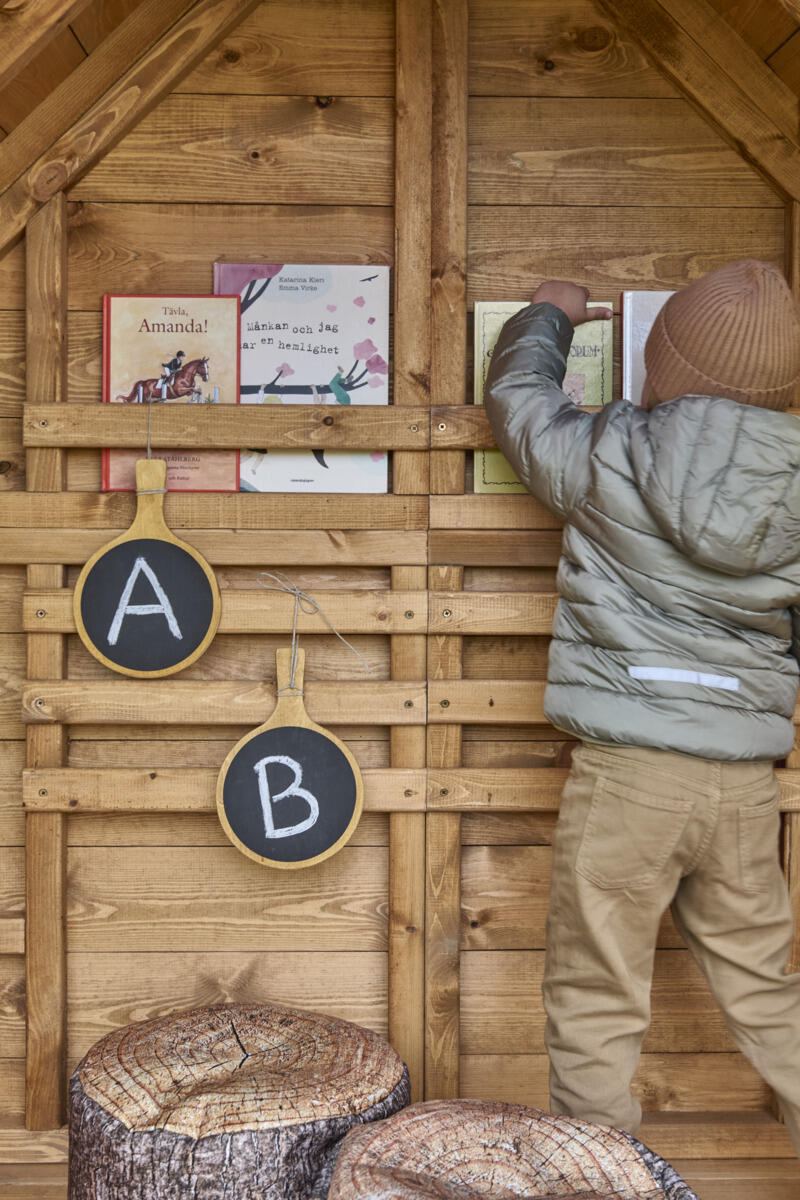 Et allsidig hus som beriker utendørsmiljøet og inspirerer til uendelig fantasifull lek. Det lille huset kan fungere både som butikk, markedsbod, et hjem eller et rolig lite hjørne. På forsiden er det et stort vindu som kan fungere som en disk, og det er også utstyrt med to tavler. Laget av FSC-sertifisert furu som er overflatebehandlet med en vannbasert lakk. For veggforankring trengs 2 stk av art.nr. 151133, eller for markforankring trengs 4 stk av 161297. Leveres umontert.