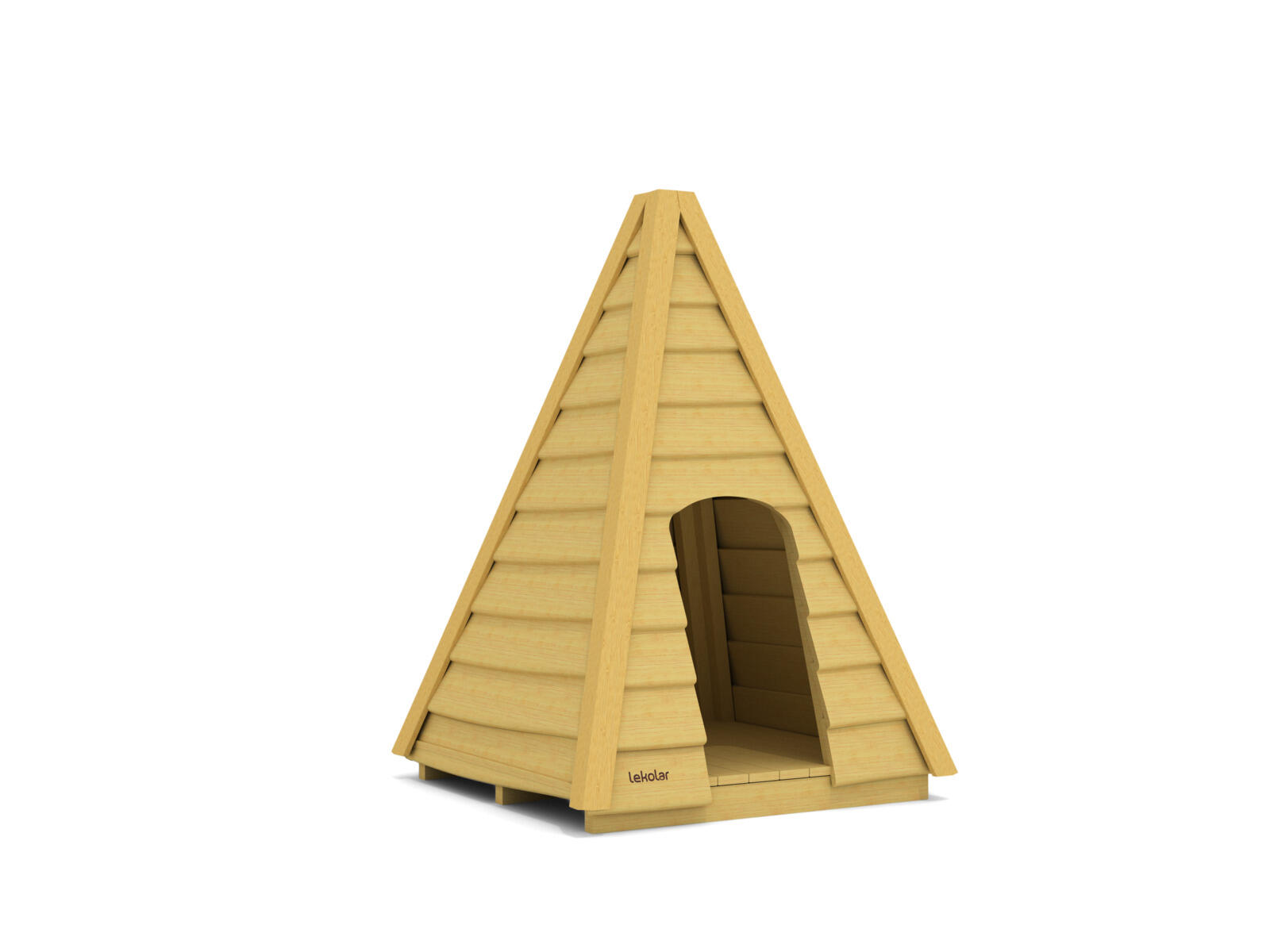 Med sitt naturlige inntrykk blir Tipi lekehus et koselig innslag i utemiljøet. Lekehuset er inspirert av et telt som kan lokke til både fantasifull rollelek, lesekrok eller som et tilfluktssted hvis man vil trekke seg tilbake en stund. Laget av FSC-sertifisert Robinia, et treslag som er kjent for sin høye motstandskraft mot værpåvirkning. Robinia absorberer minimalt med vann og utmerker seg med sin ekstremt lange holdbarhet. Leveres montert.