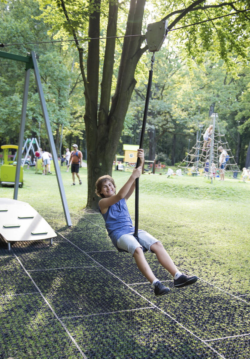 En taubane med plattform som inviterer til morsom lek i utemiljøet. De tre forskjellige måtene å komme seg opp på plattformen skaper variasjon, og det å våge å fare fremover i full fart blir en spennende opplevelse og gir en herlig følelse. Konstruksjon av stål, impregnert furu, sklisikker og vanntett kryssfiner, HDPE/HPL. Monteres i henhold til installasjonsmanualen. Ved montering/installasjon skal alltid manualen som medfølger produktet ved levering benyttes. Den nyeste versjonen er tilgjengelig på forespørsel. Inkluderer markforankring K1.