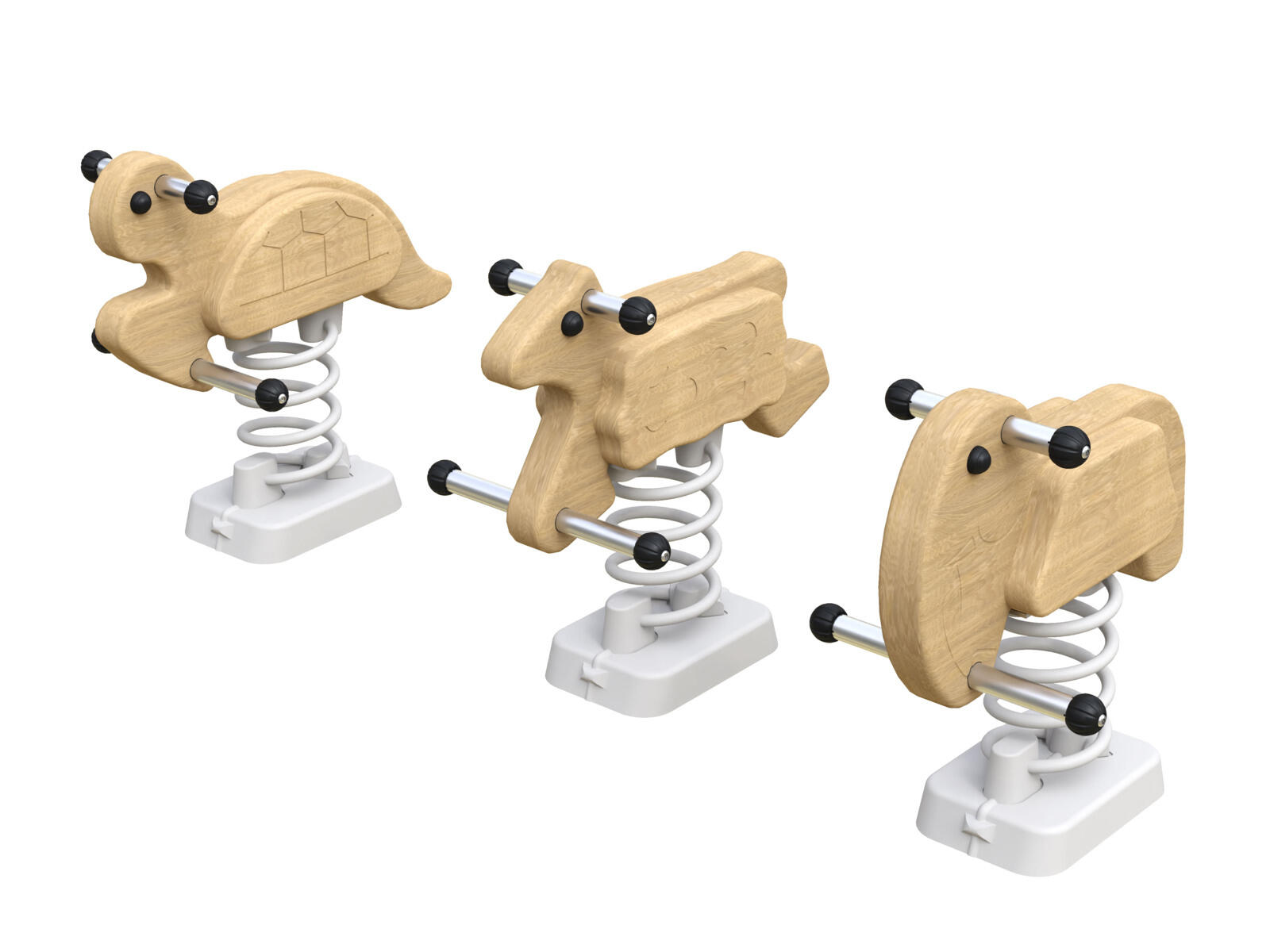 Fjærgyngen har tydelige hånd- og fotgrep samt et komfortabelt sete. Den gyngende bevegelsen trener balanse, koordinasjon og kroppsstyrke.