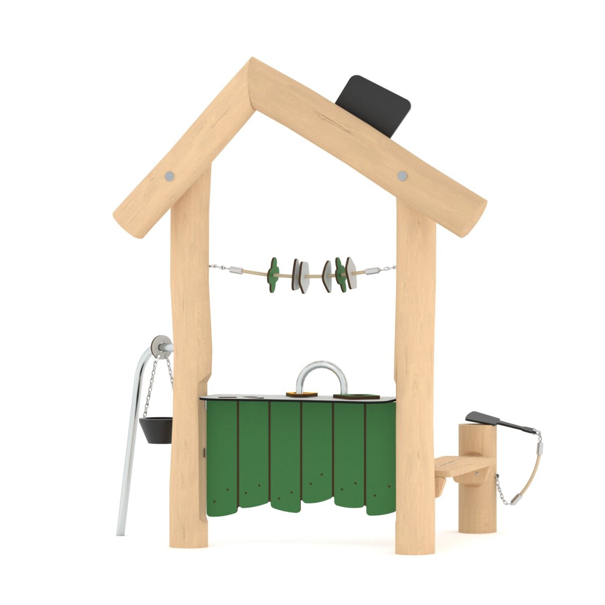 Robinia føyer seg fint inn i utemiljøet i barnehagen og gir et mykt og naturlig inntrykk. Dette kjøkkenet gir barna muligheten til å bruke fantasien, spille sosialt rollespill og imitere omgivelsene. Kjøkkenet er tilpasset i høyden for de minste barna og gir et trygt lekemiljø. Robinia er en tresort med høy motstand mot forvitring. Den har evnen til å absorbere minimalt med vann og utmerker seg ved sin ekstremt lange holdbarhet. Ved montering/installasjon skal alltid manualen som medfølger produktet ved levering benyttes. Den nyeste versjonen er tilgjengelig på forespørsel. Inkluderer markforankring K21.