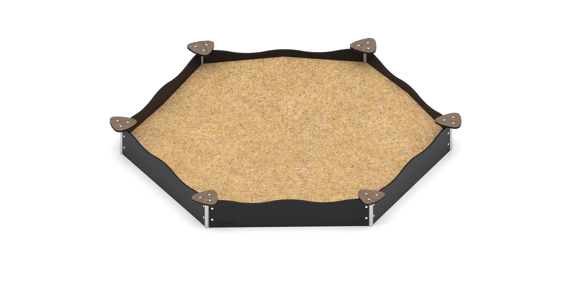 Sekskantet sandkasse. Varmgalvanisert. Paneler i HDPE i multifarget, øvrige farger i HPL. Ved montering/installasjon skal alltid manualen som medfølger produktet ved levering benyttes. Den nyeste versjonen er tilgjengelig på forespørsel.