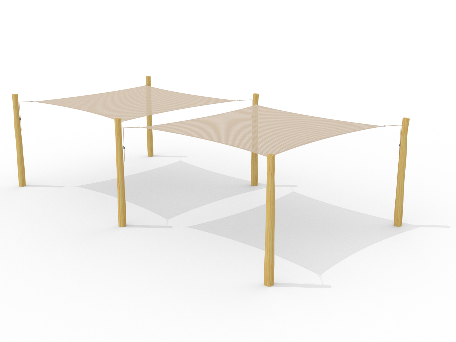Solseil med fire trestolper i robinia. Et fint alternativ til parasoll. Værbestandig materiale og stopper opp til 90% av solen stråler. Vannavvisende. En viss vanngjennomtrengning tillates, slik at det ikke blir liggende vann på seilet. Dette bidrar til at soleilet varer lenger. Selve seilet måler L360xB360 cm. Til lekeplasser. Mål: L410xB410xH220 cm. Monteringstid: 1 person a 3 timer.