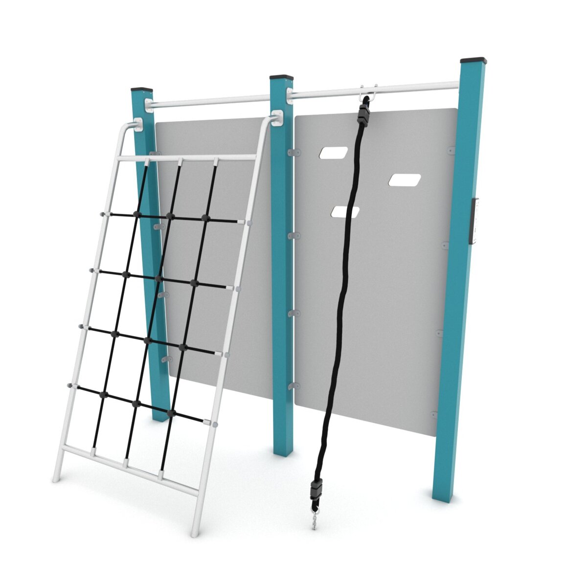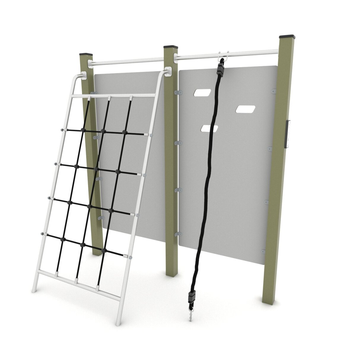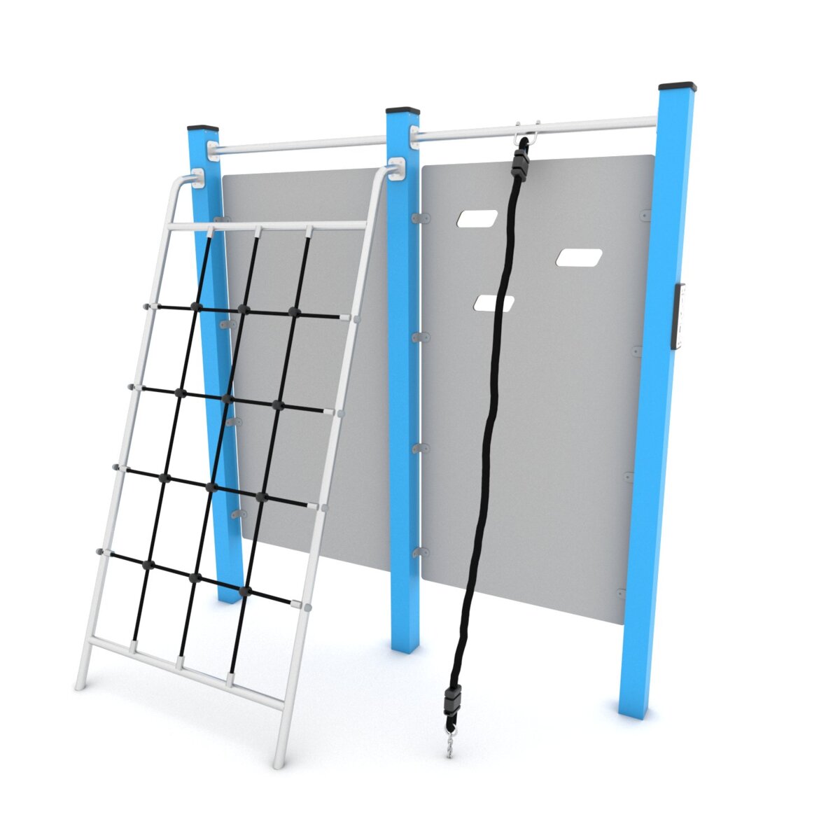 Skap et inspirerende utemiljø som både utfordrer og motiverer. Workout PRO er avansert og solid treningsutstyr som gir mulighet til å trene allsidig, effektivt og funksjonelt utendørs. Denne veggen med vertikalt nett og tau er utstyrt med 3 håndtak og 3 trinn for føttene som hjelper til når man vil komme seg over den utfordrende 245 cm høye veggen. Laget av galvanisert og pulverlakkert stål. Tydelig instruksjonsskilt med grunnøvelser som er trykt på værbestandig aluminium. Ved montering/installasjon skal alltid manualen som medfølger produktet ved levering benyttes. Den nyeste versjonen er tilgjengelig på forespørsel.