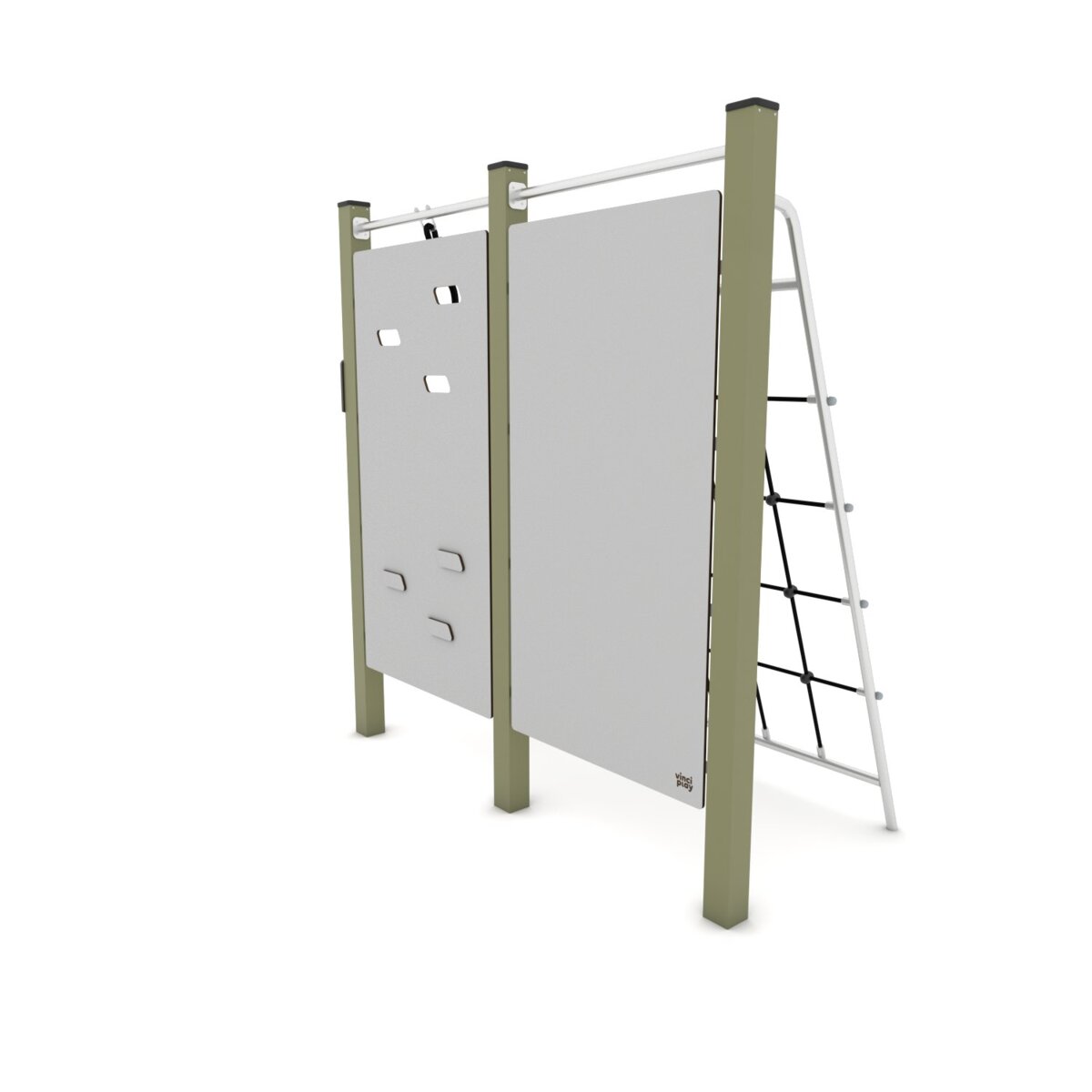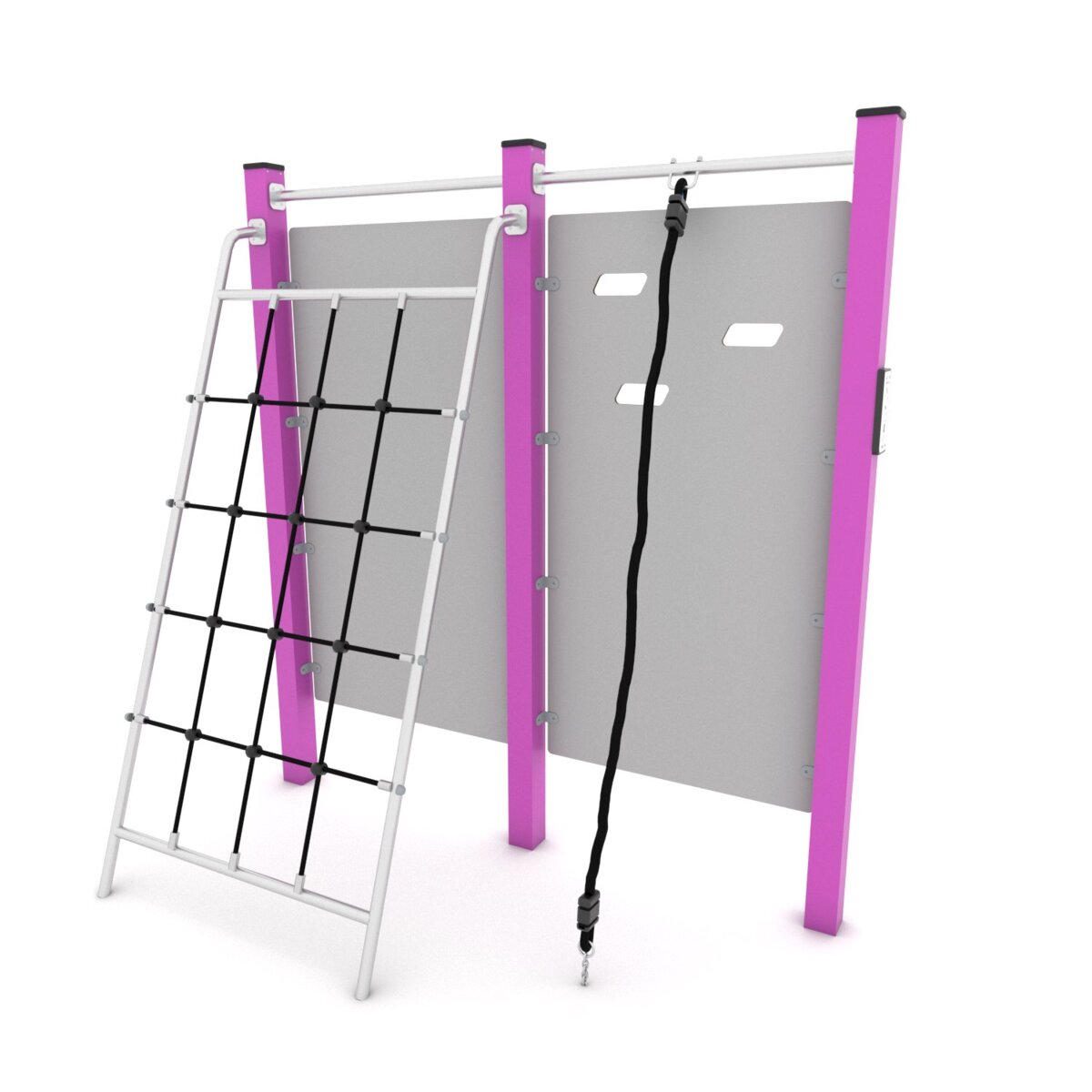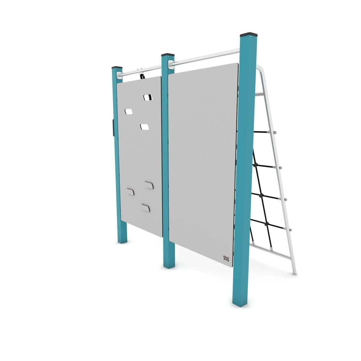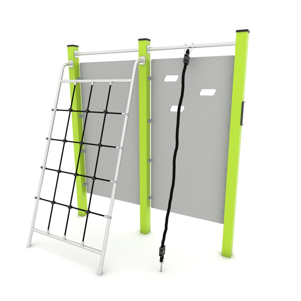Skap et inspirerende utemiljø som både utfordrer og motiverer. Workout PRO er avansert og solid treningsutstyr som gir mulighet til å trene allsidig, effektivt og funksjonelt utendørs. Denne veggen med vertikalt nett og tau er utstyrt med 3 håndtak og 3 trinn for føttene som hjelper til når man vil komme seg over den utfordrende 245 cm høye veggen. Laget av galvanisert og pulverlakkert stål. Tydelig instruksjonsskilt med grunnøvelser som er trykt på værbestandig aluminium. Ved montering/installasjon skal alltid manualen som medfølger produktet ved levering benyttes. Den nyeste versjonen er tilgjengelig på forespørsel.