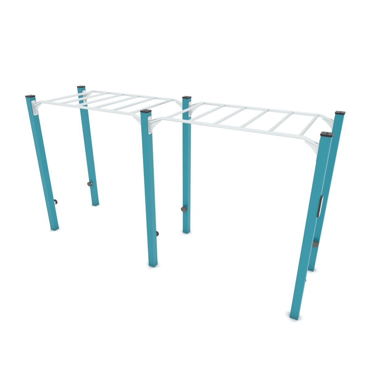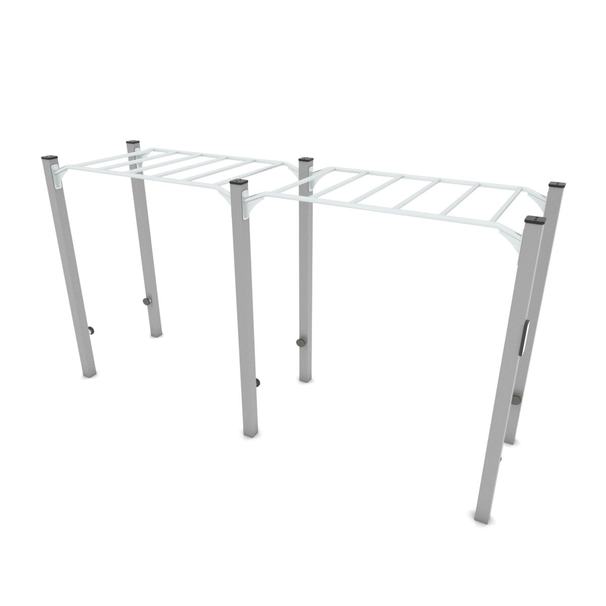 Skap et inspirerende utemiljø som både utfordrer og motiverer. Workout PRO er avansert og solid treningsutstyr som gir mulighet til å trene allsidig, effektivt og funksjonelt utendørs. Den horisontale stigen for dobbel armgang er et klassisk hinderbaneløp hvor man skal komme seg til den andre siden uten å bruke føttene. Hver stolpe har et fottrinn som kan brukes til hvile eller for å nå opp. Laget av galvanisert og pulverlakkert stål. Tydelig instruksjonsskilt med grunnøvelser som er trykt på værbestandig aluminium. Ved montering/installasjon skal alltid manualen som medfølger produktet ved levering benyttes. Den nyeste versjonen er tilgjengelig på forespørsel.