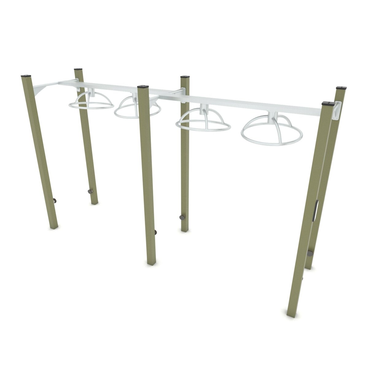 Skap et inspirerende utemiljø som både utfordrer og motiverer. Workout PRO er avansert og solid treningsutstyr som gir mulighet til å trene allsidig, effektivt og funksjonelt utendørs. Den horisontale stigen for dobbel armgang er et klassisk hinderbaneløp hvor man skal komme seg til den andre siden uten å bruke føttene. Hver stolpe har et fottrinn som kan brukes til hvile eller for å nå opp. Laget av galvanisert og pulverlakkert stål. Tydelig instruksjonsskilt med grunnøvelser som er trykt på værbestandig aluminium. Ved montering/installasjon skal alltid manualen som medfølger produktet ved levering benyttes. Den nyeste versjonen er tilgjengelig på forespørsel.