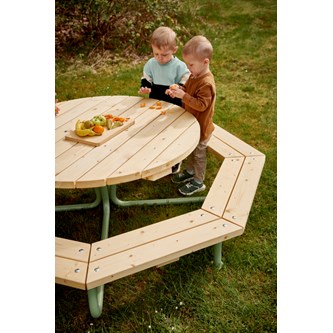 Utebord Steady Junior uten rygg i massiv skandinavisk norrlandsfuru. Varmgalvanisert understell. Bordet er forberedt for fast innstallasjon i bakken. Treet er varmebehandlet for utendørsmiljø, ThermoWood behandlingen gjør treet mer motstandsdyktig og holdbart. Varmebehandlet trevirke er skånsomt for miljøet Mål: L1500xB1100 mm. Sittehøyde 330 mm, bordhøyde 560 mm.